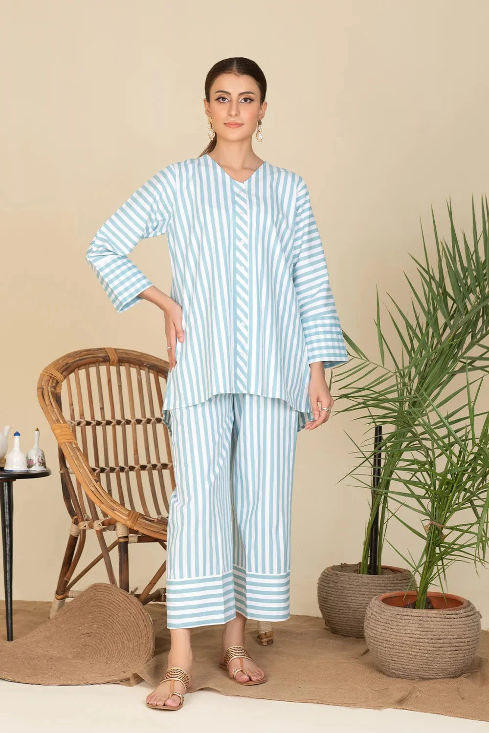 A stylish and breathable 2-piece cambric suit featuring a shirt and trouser perfect for casual wear, semi-formal gatherings, and everyday elegance.