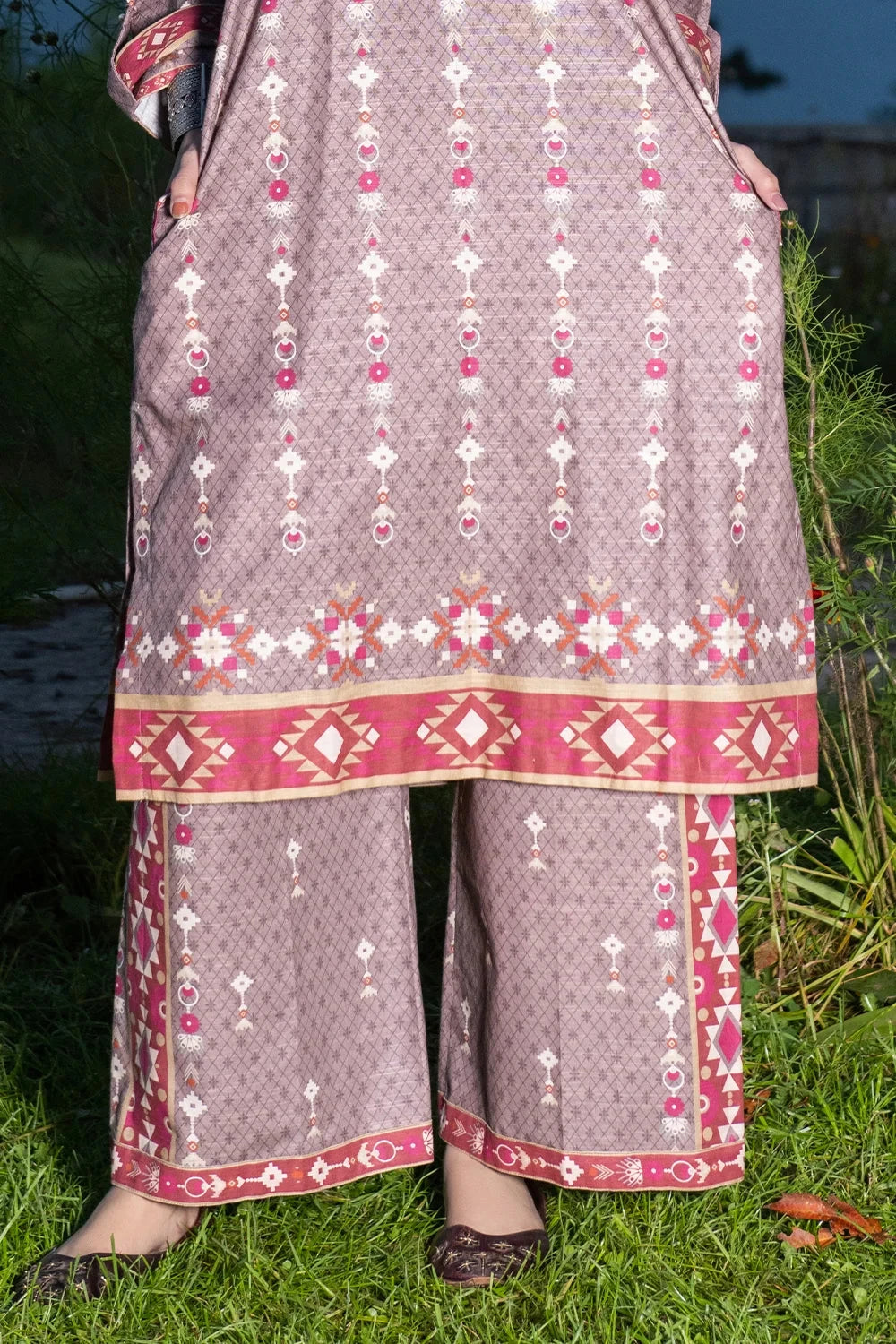 A stylish and breathable 2-piece Khaddar suit featuring a shirt and trouser perfect for casual wear, semi-formal gatherings, and everyday elegance.