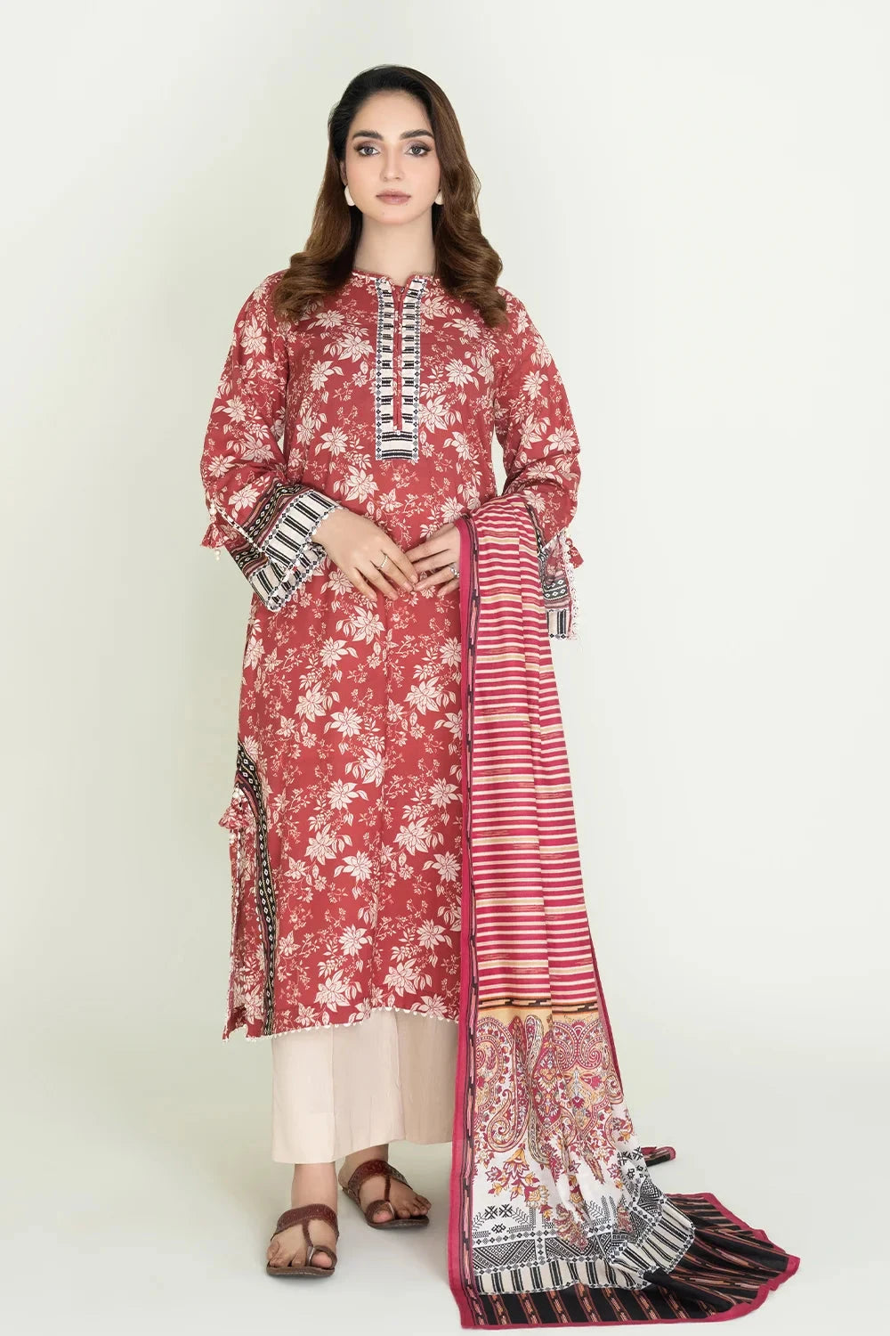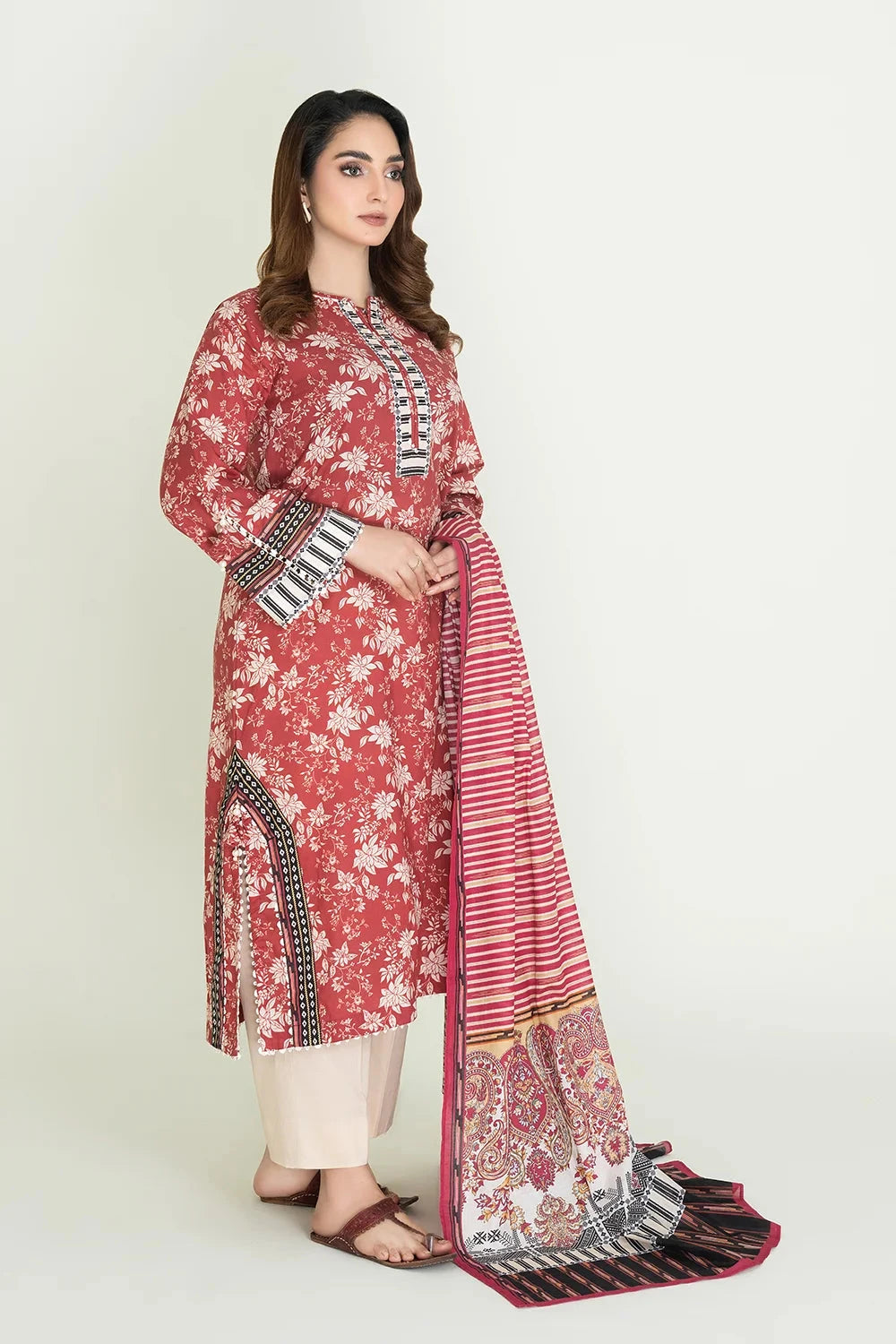 2PC Stitched Printed Lawn Shirt & Dupatta | RTW-KSD-3872