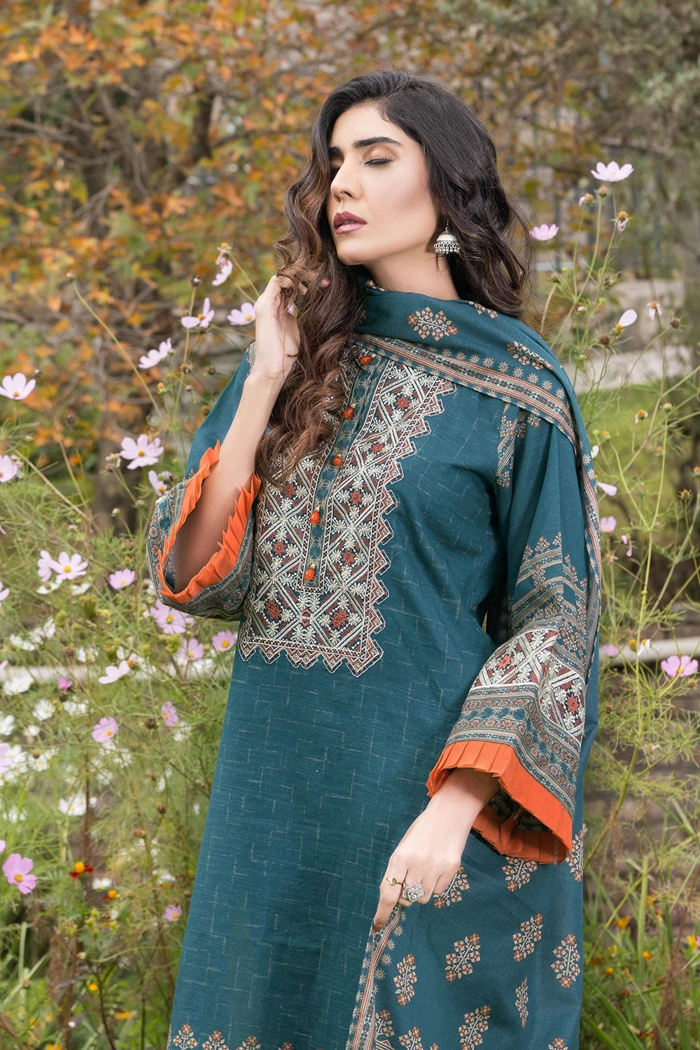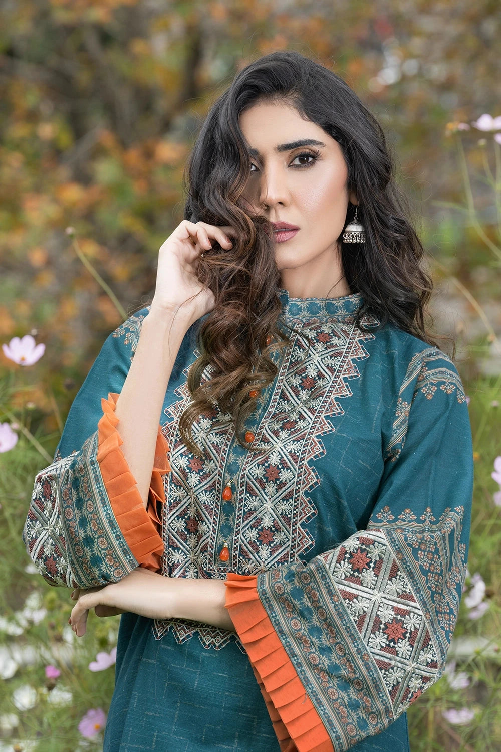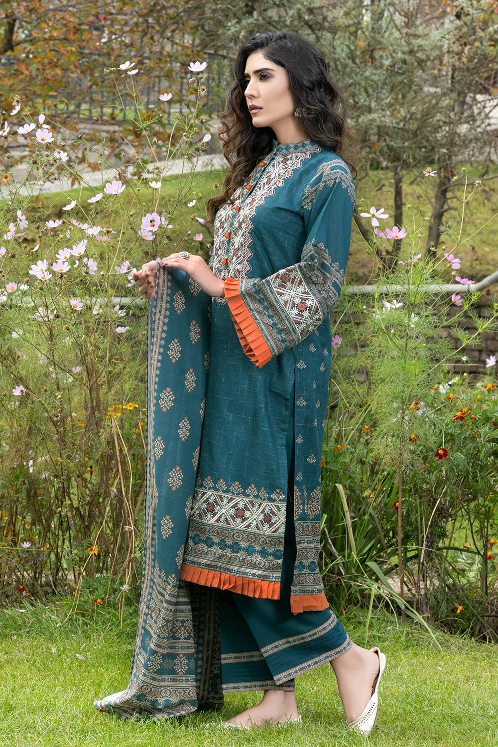 Explore Winter vibes 3pc Embroidered Khaddar Suit this collection features embroidered Khaddar shirt and trouser with Printed Khaddar dupatta.