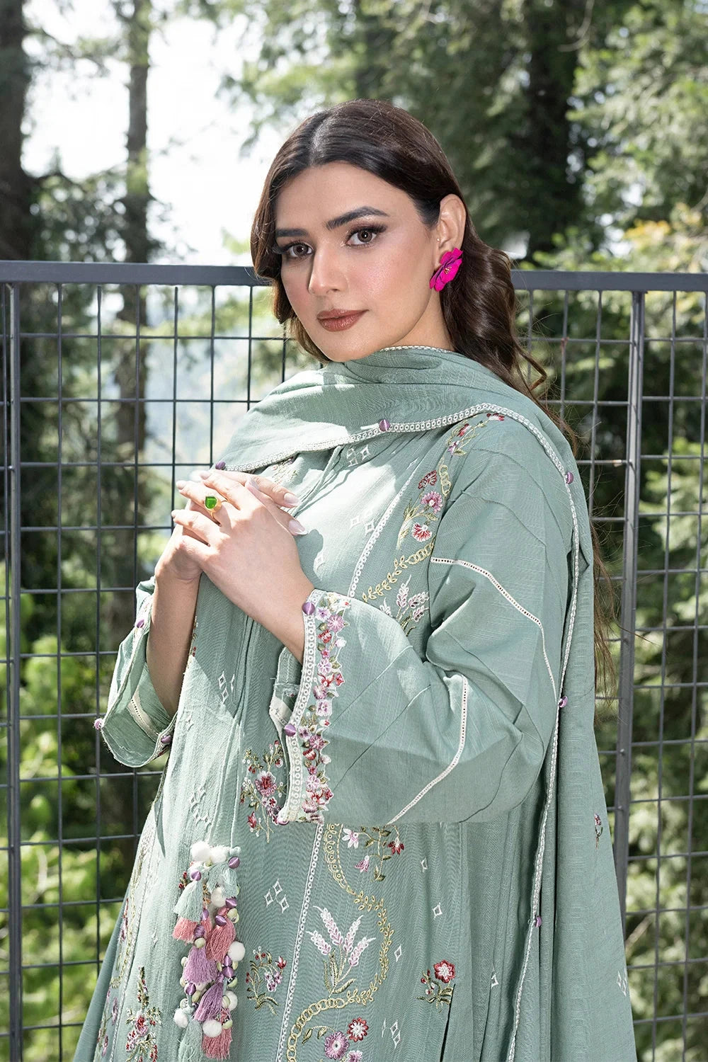 Explore Winter vibes 3pc Embroidered Khaddar Suit this collection features embroidered Khaddar shirt and trouser with embroidered Khaddar dupatta.