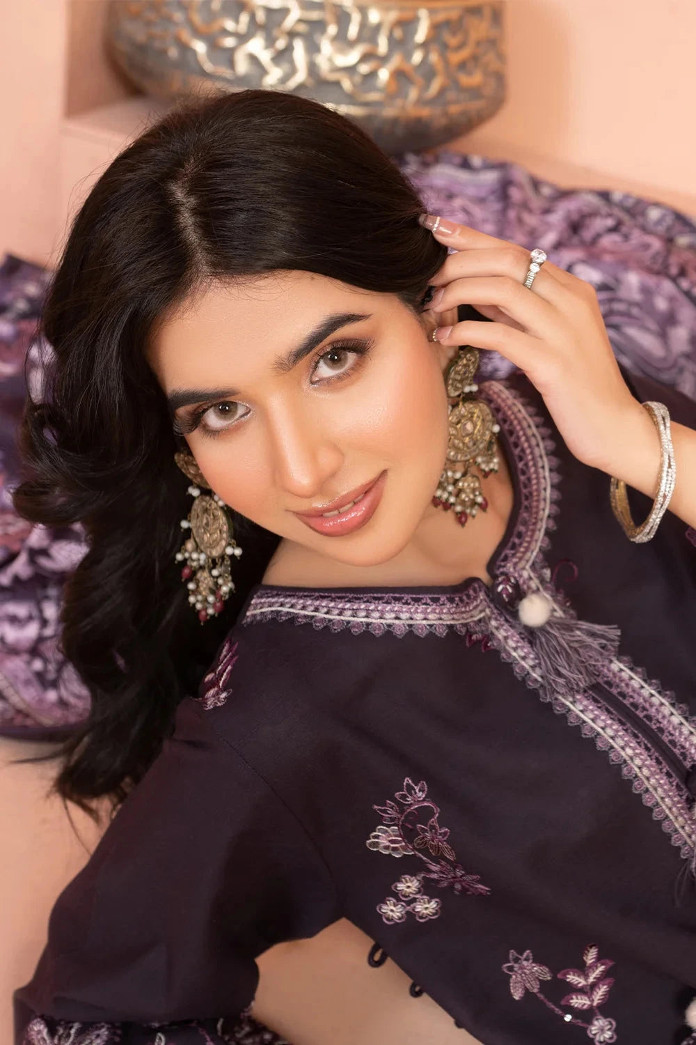 Explore Winter vibes 3pc Embroidered Khaddar Suit this collection features embroidered Khaddar shirt and trouser with Printed Twill Shawl.