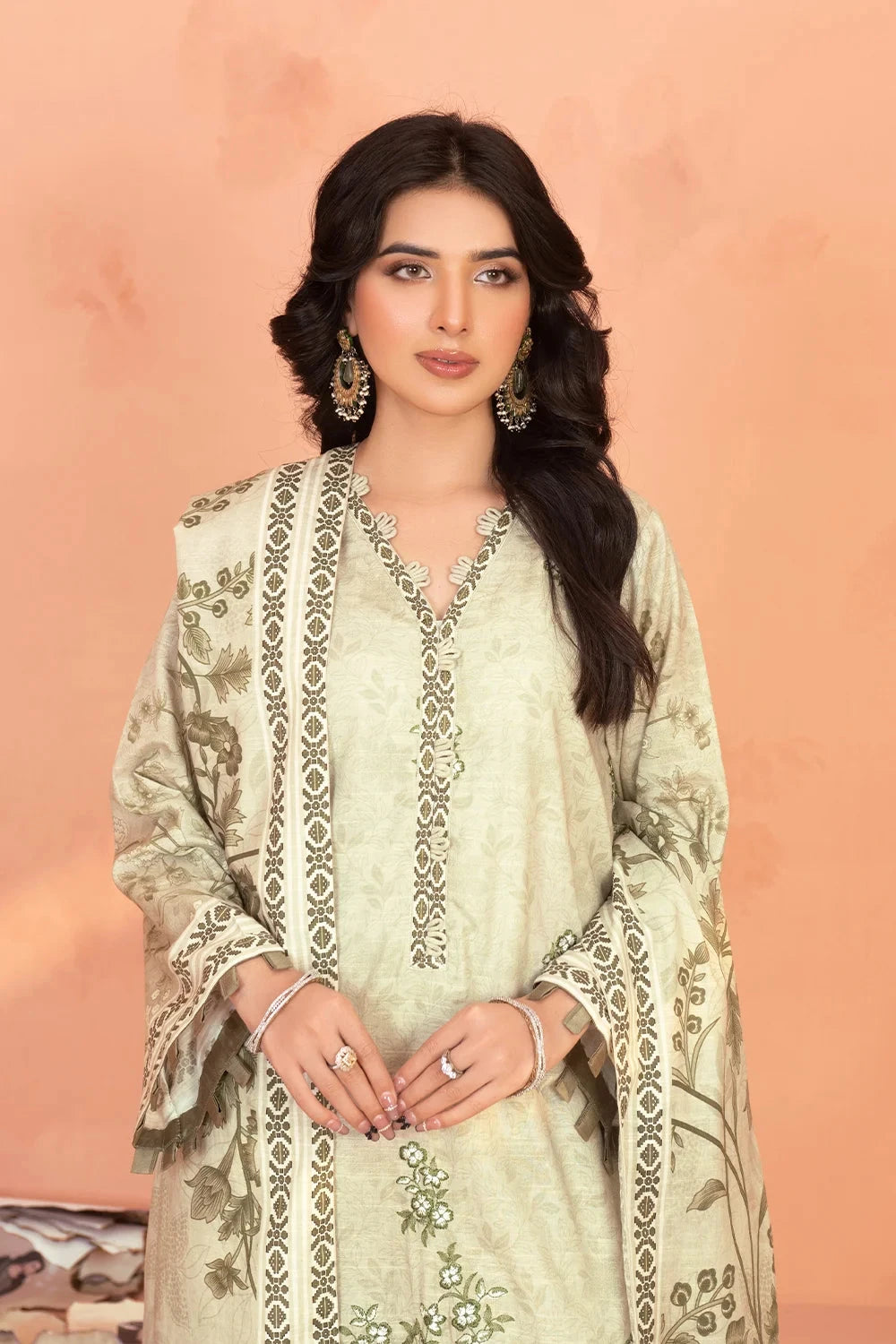 Explore Winter vibes 3pc Embroidered Khaddar Suit this collection features embroidered Khaddar shirt and trouser with Printed Khaddar Dupatta.