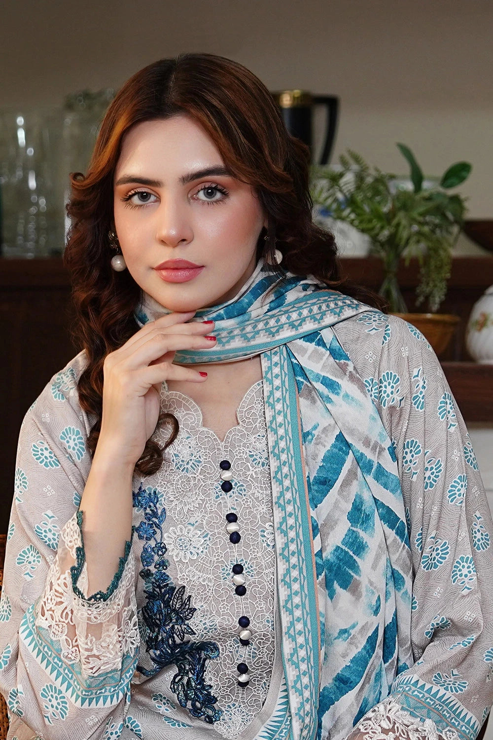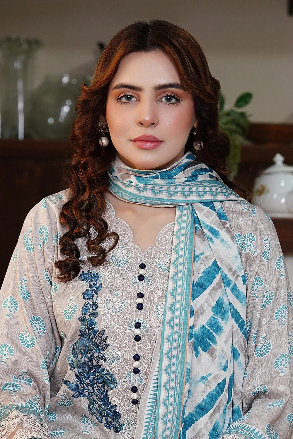 Explore Winter vibes 3pc Embroidered Kotail Linen Suit this collection features Embroidered Kotail Linen shirt and dyed trouser with printed Kotail Linen dupatta.