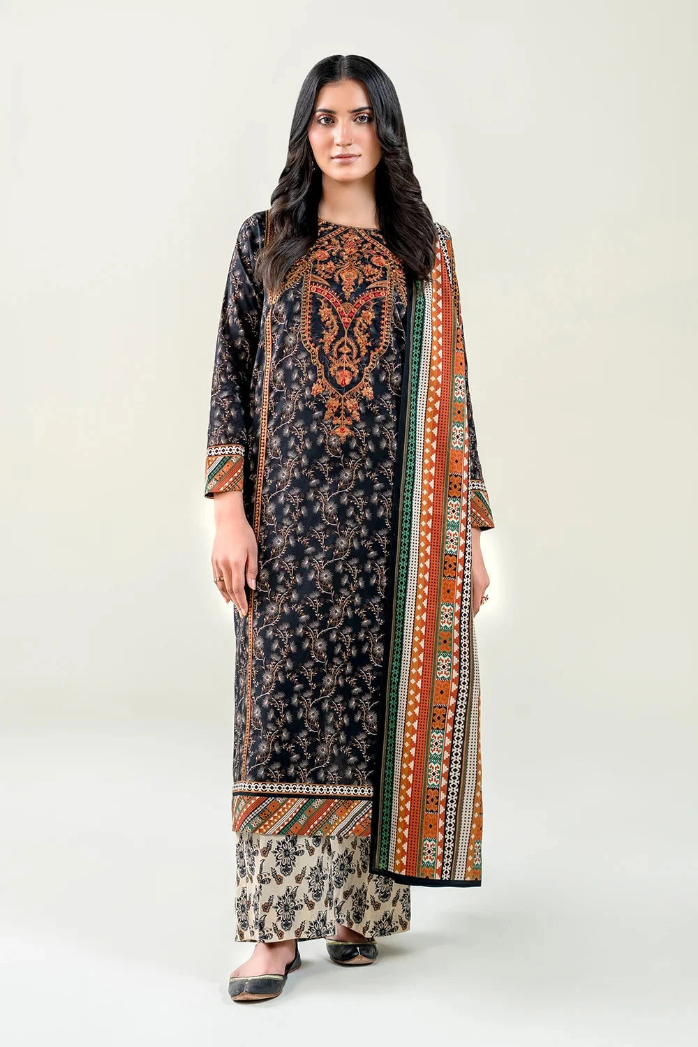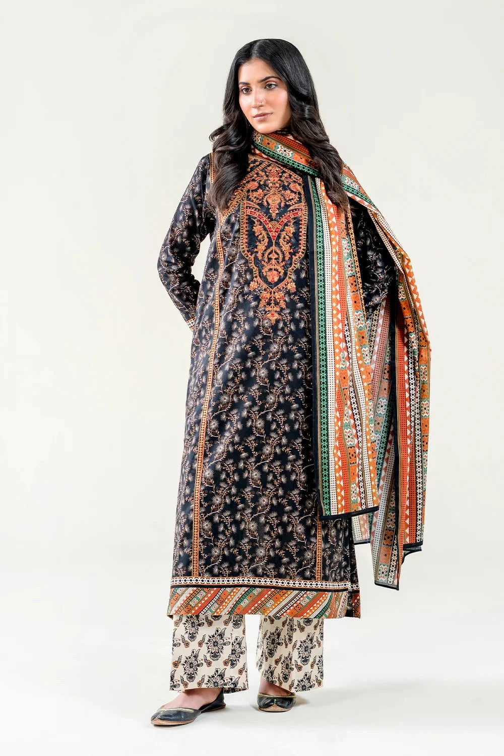 A stylish and breathable 3-piece lawn suit featuring a embroidered printed shirt, printed trouser, and matching printed dupatta-perfect for effortless elegance and all-day comfort.