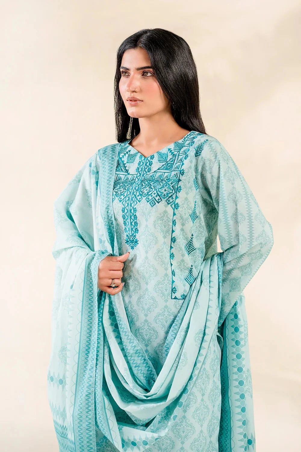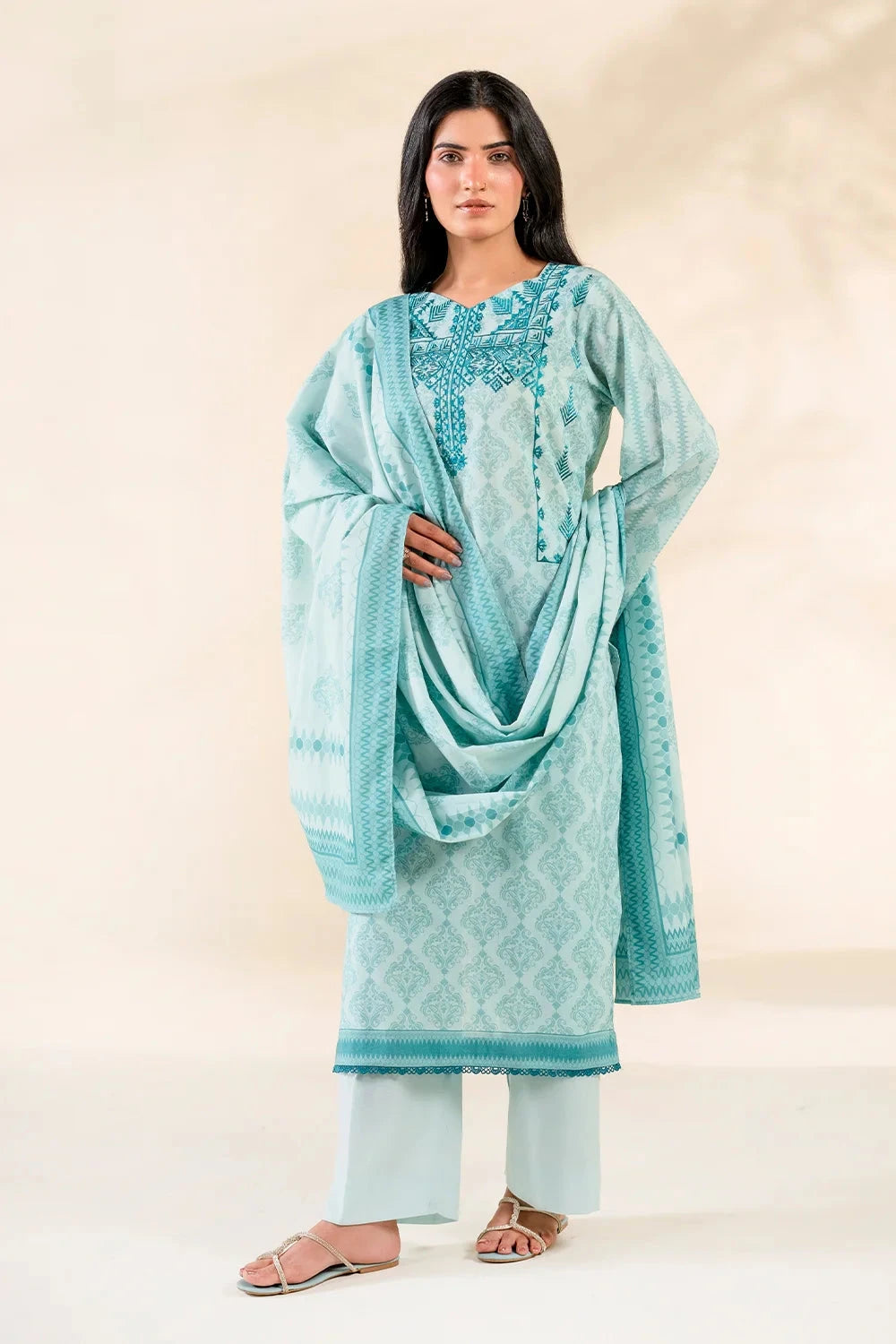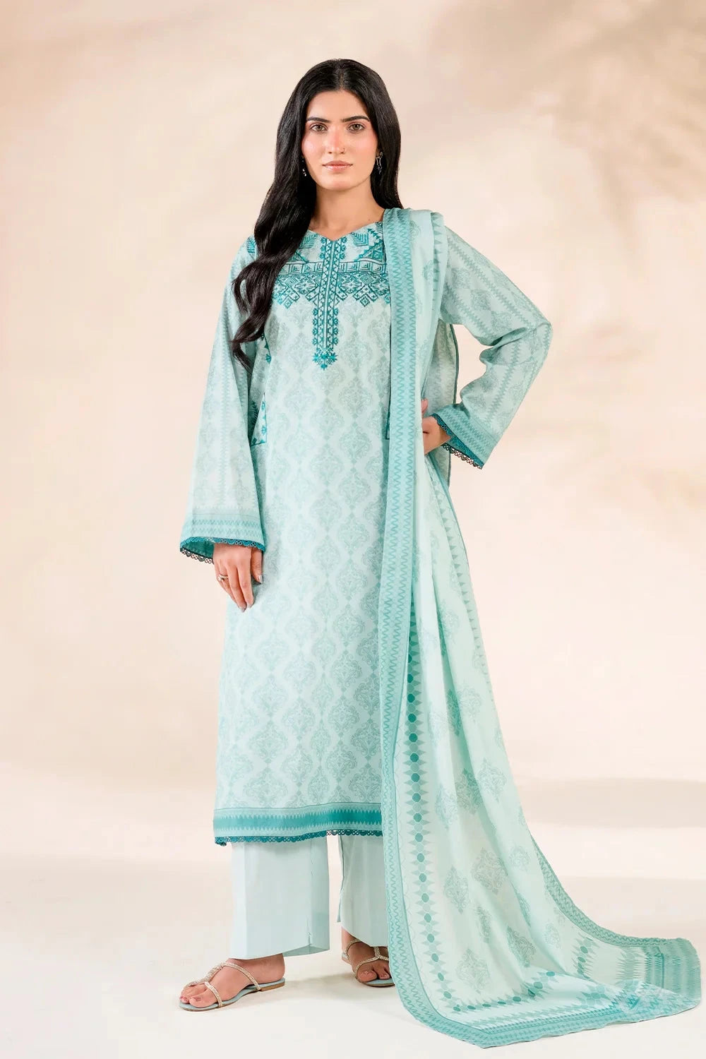 A stylish and breathable 3-piece lawn suit featuring a embroidered printed shirt, dyed trouser, and matching printed dupatta-perfect for effortless elegance and all-day comfort.