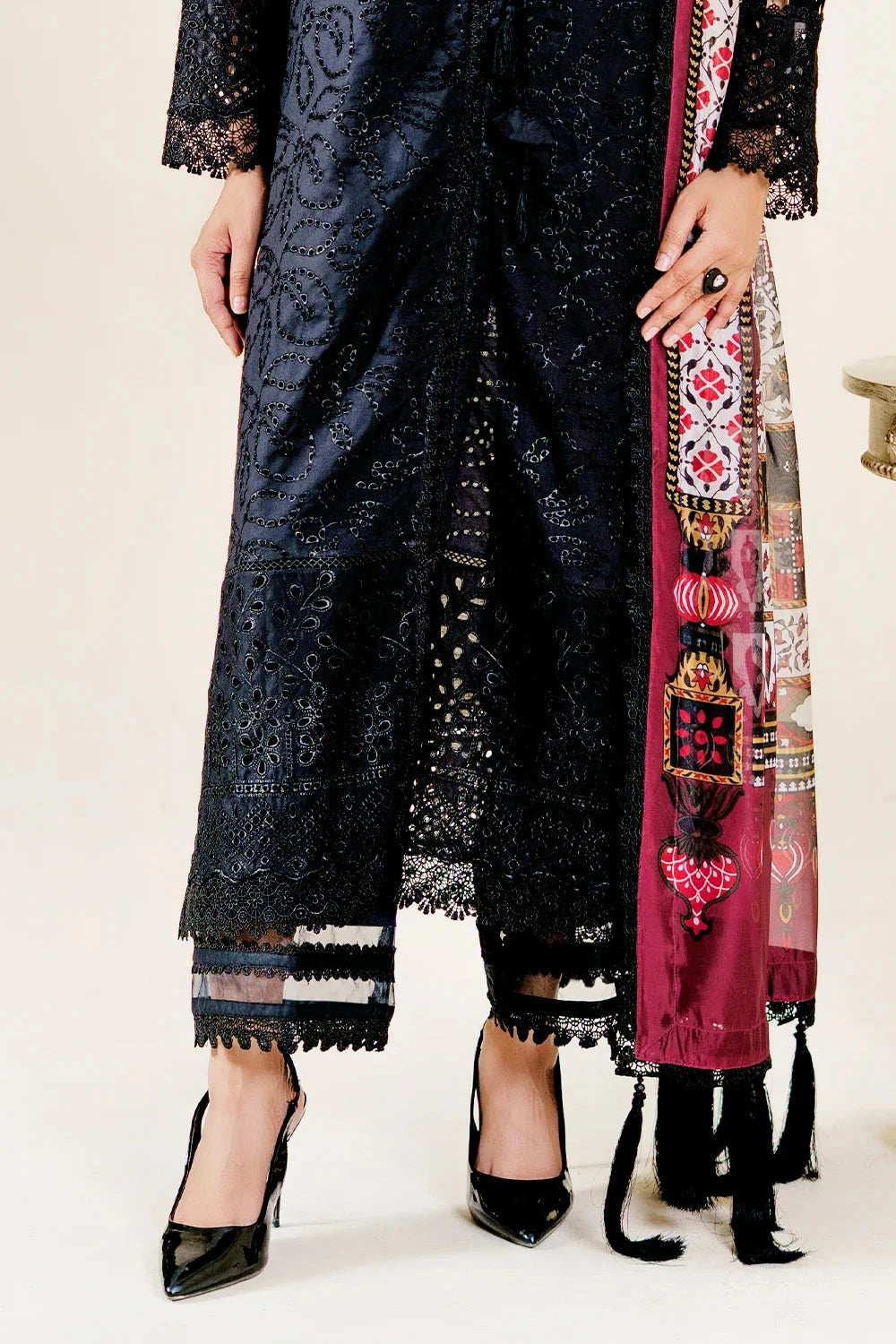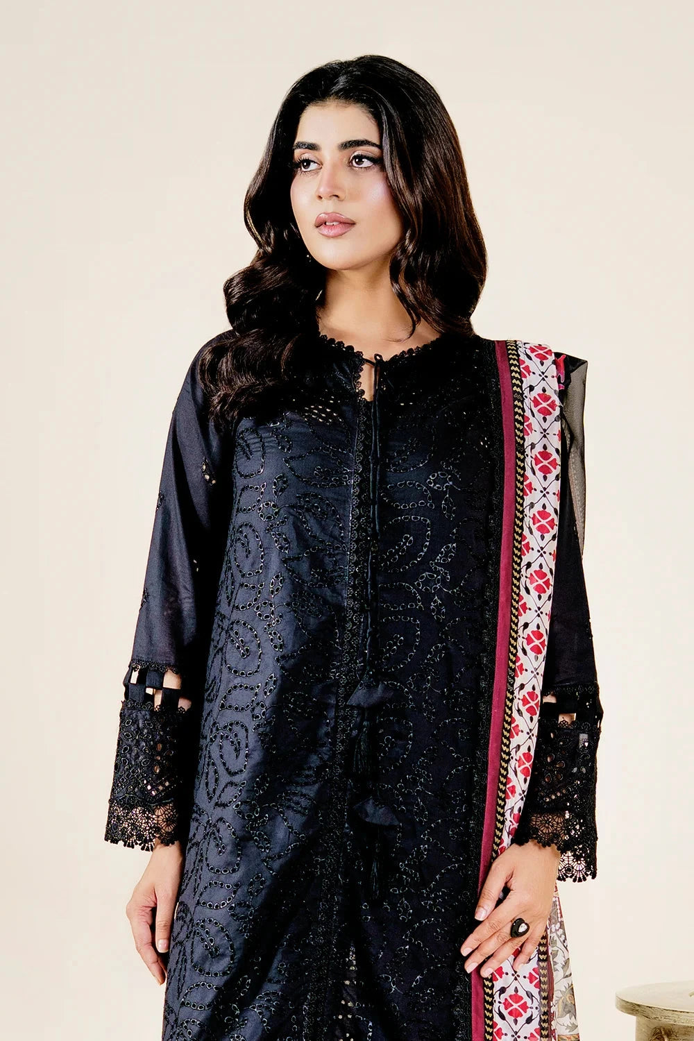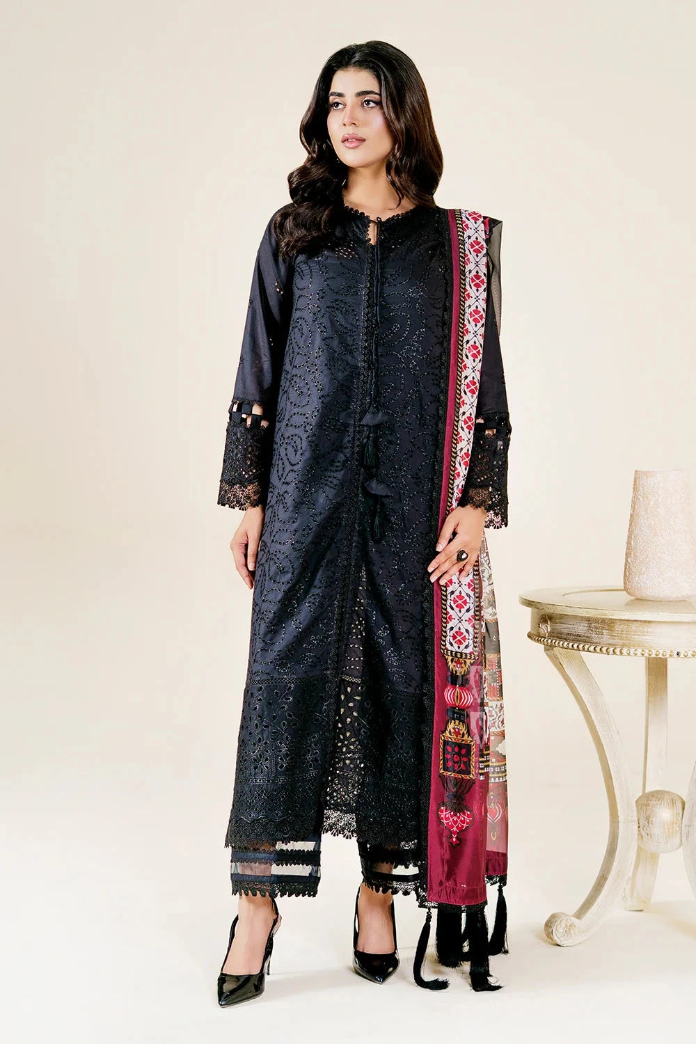 A stylish and breathable 3-piece lawn suit featuring a embroidered shirt, dyed trouser, and matching printed silk dupatta-perfect for effortless elegance and all-day comfort.