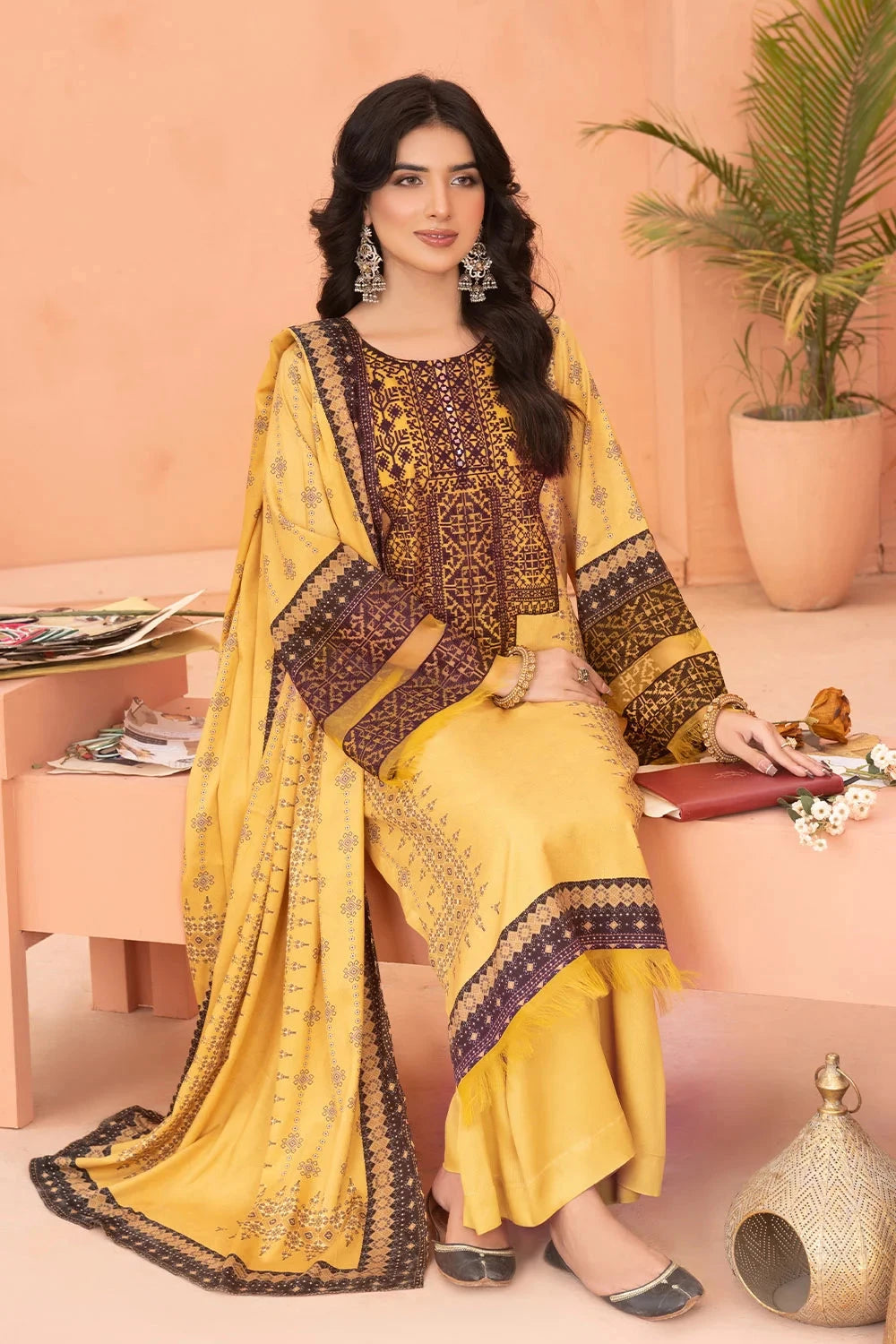 Explore Winter vibes 3pc Embroidered Linen Suit this collection features Embroidered Linen shirt and dyed trouser with printed Linen dupatta.