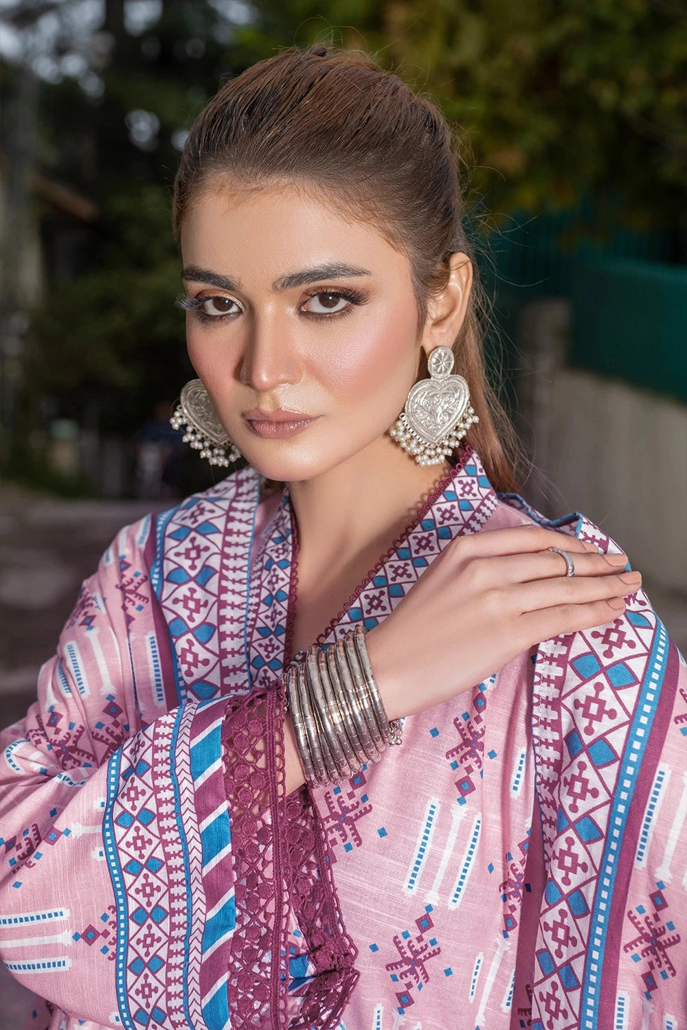 The suit features a beautifully printed khaddar fabric with intricate patterns that are both stylish and versatile for various occasions.