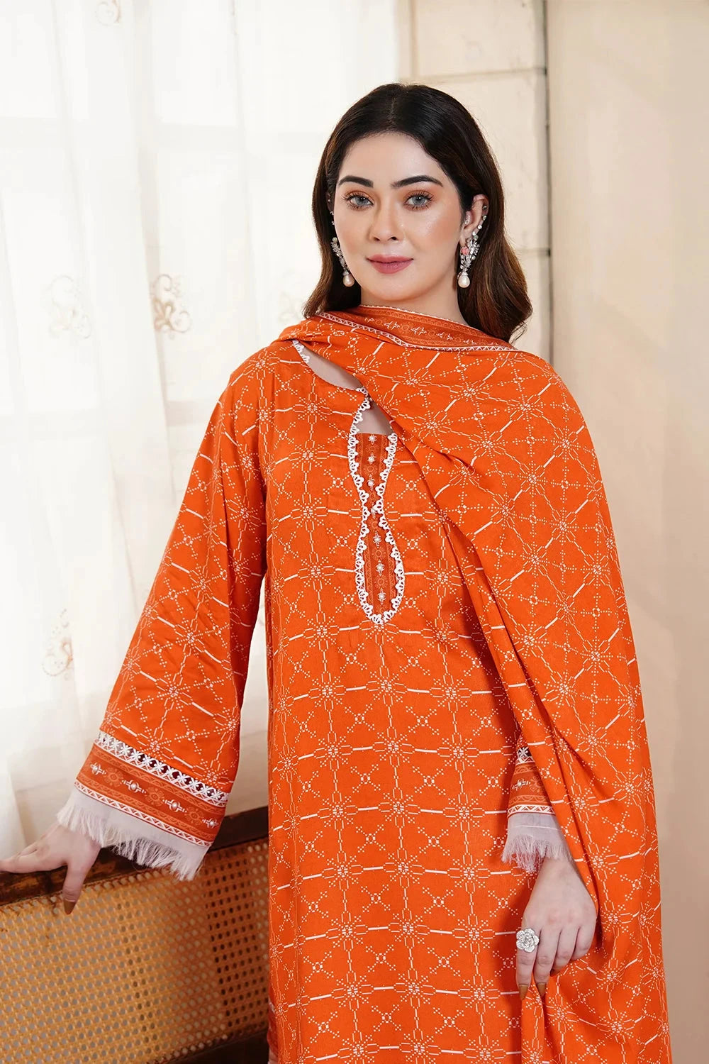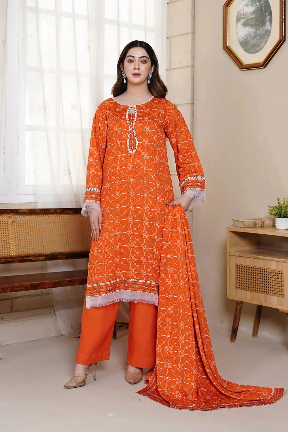Explore Winter vibes 3pc Printed Kotail Linen Suit this collection features printed Kotail Linen shirt and dyed trouser with printed Kotail Linen dupatta.
