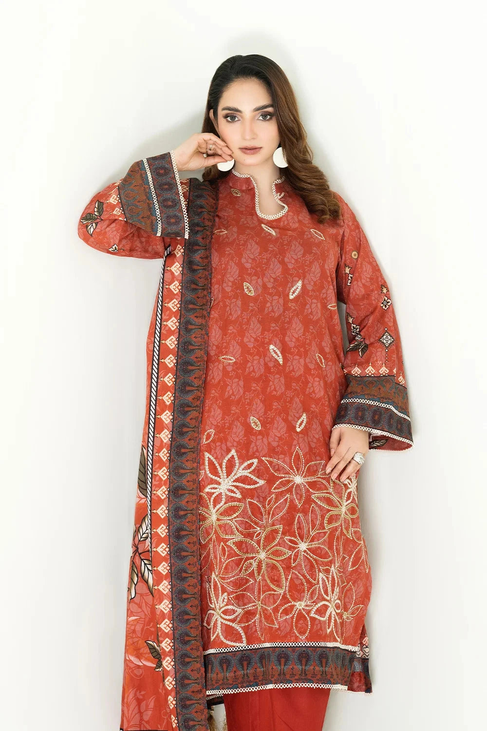 3PC Stitched Embroidered Lawn Suit | KL-RTW-3900