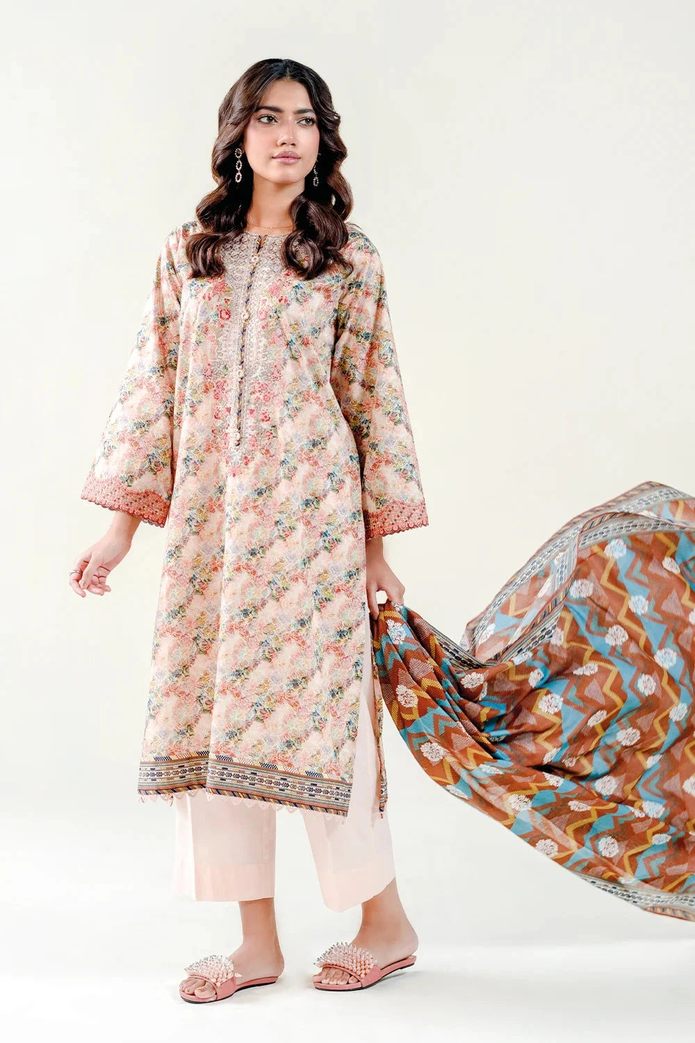A stylish and breathable 3-piece lawn suit featuring a embroidered shirt and trouser with lawn dupatta perfect for effortless elegance and all-day comfort. Be the essence of elegance with this timeless and versatile ensemble.