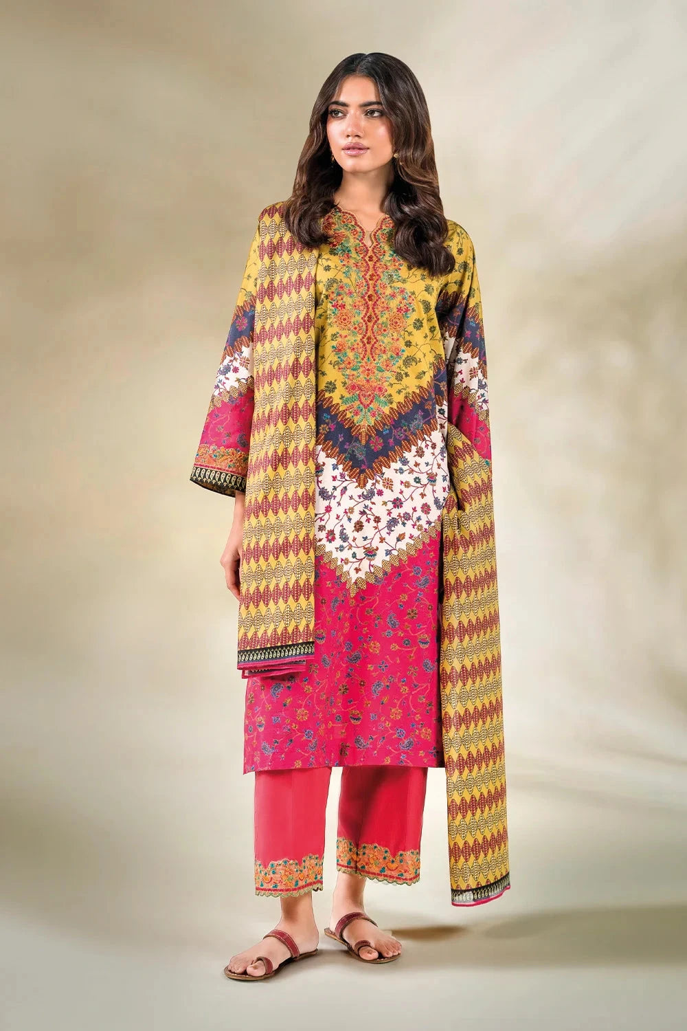 A stylish and breathable 3-piece lawn suit featuring a embroidered shirt and trouser with lawn dupatta perfect for effortless elegance and all-day comfort. Be the essence of elegance with this timeless and versatile ensemble.