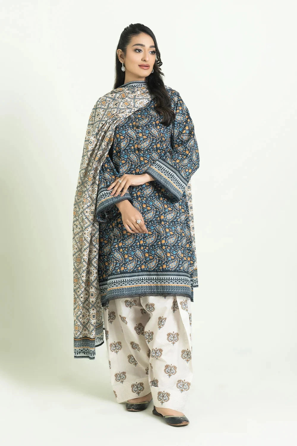 A stylish and breathable 3-piece lawn suit featuring a printed shirt, printed trouser, and matching printed dupatta-perfect for effortless elegance and all-day comfort.