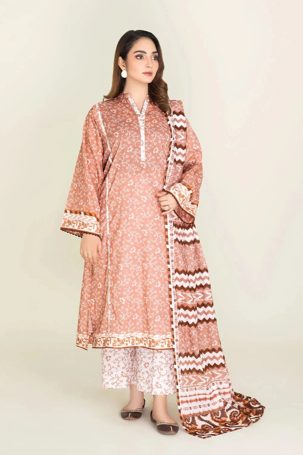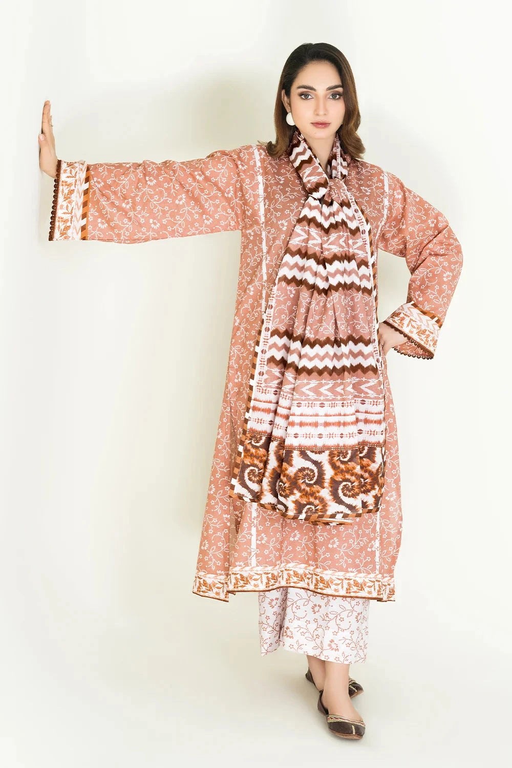 A stylish and breathable 3-piece lawn suit featuring a printed shirt, printed trouser, and matching printed dupatta-perfect for effortless elegance and all-day comfort.
