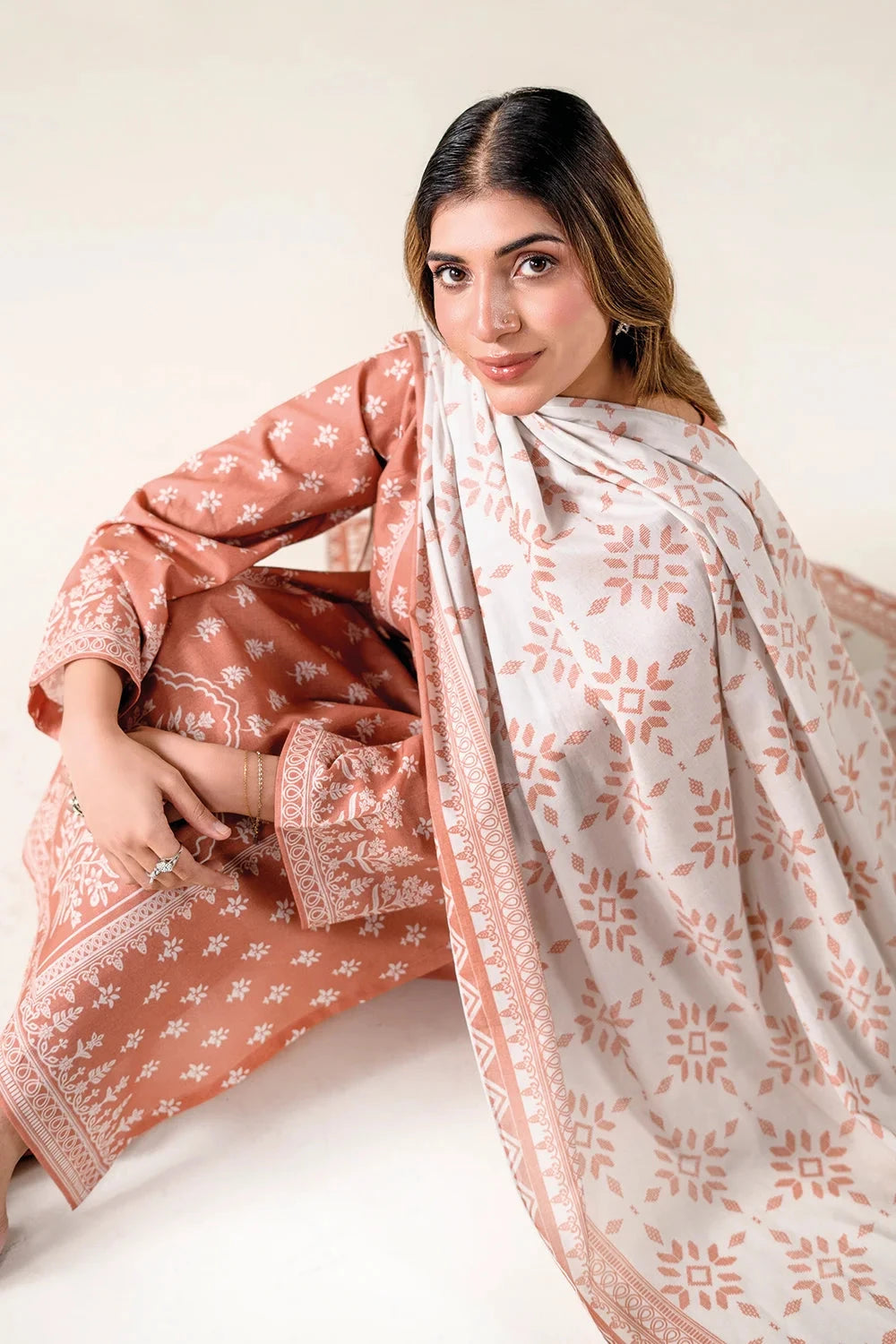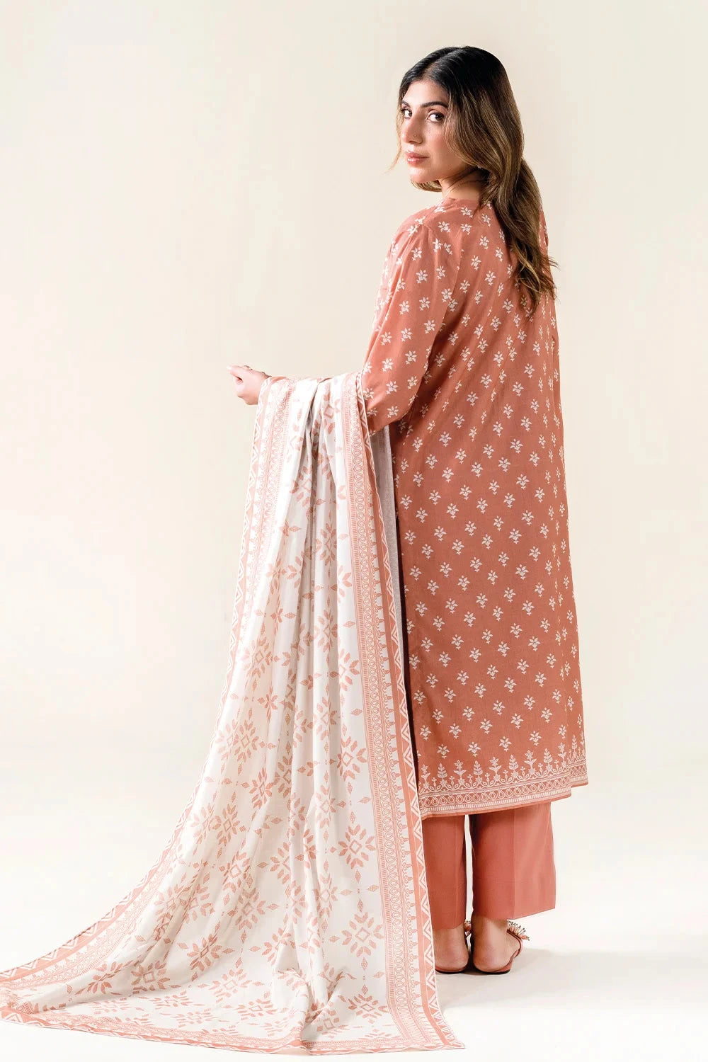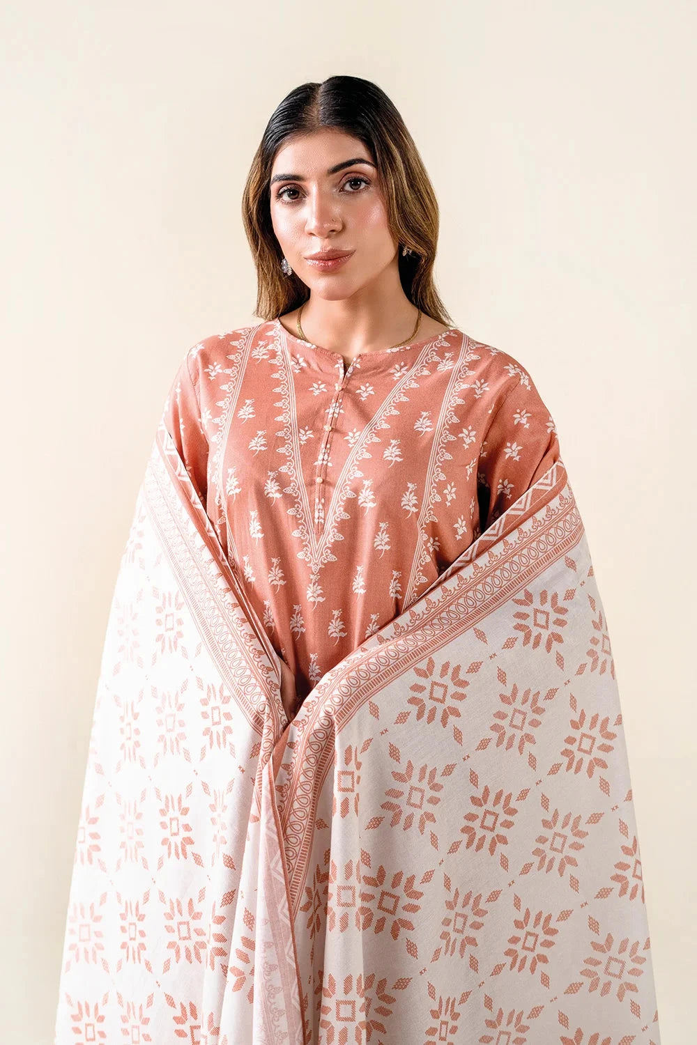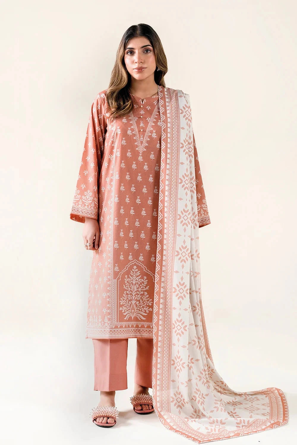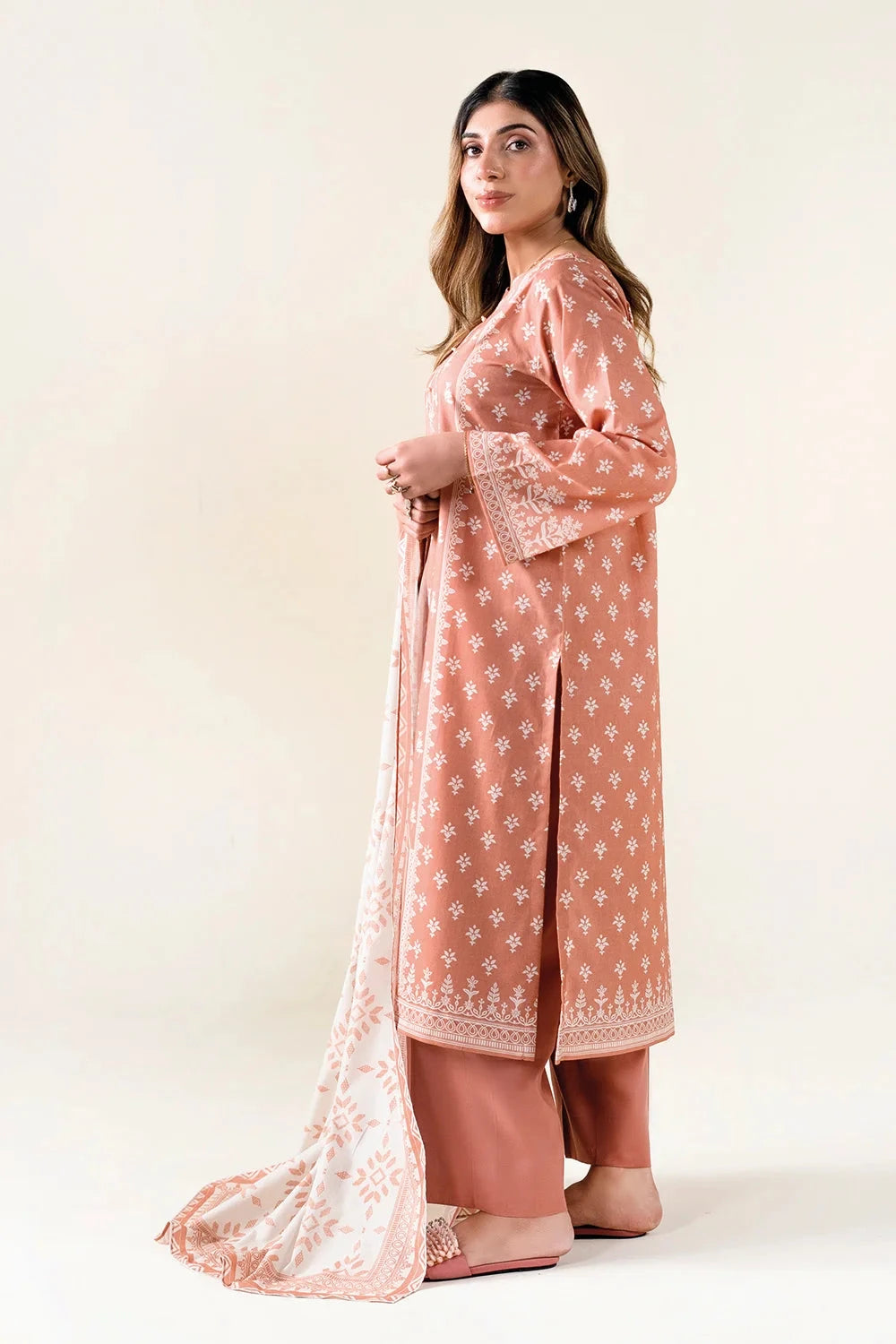 A stylish and breathable 3-piece lawn suit featuring a printed shirt, dyed trouser, and matching printed dupatta-perfect for effortless elegance and all-day comfort.