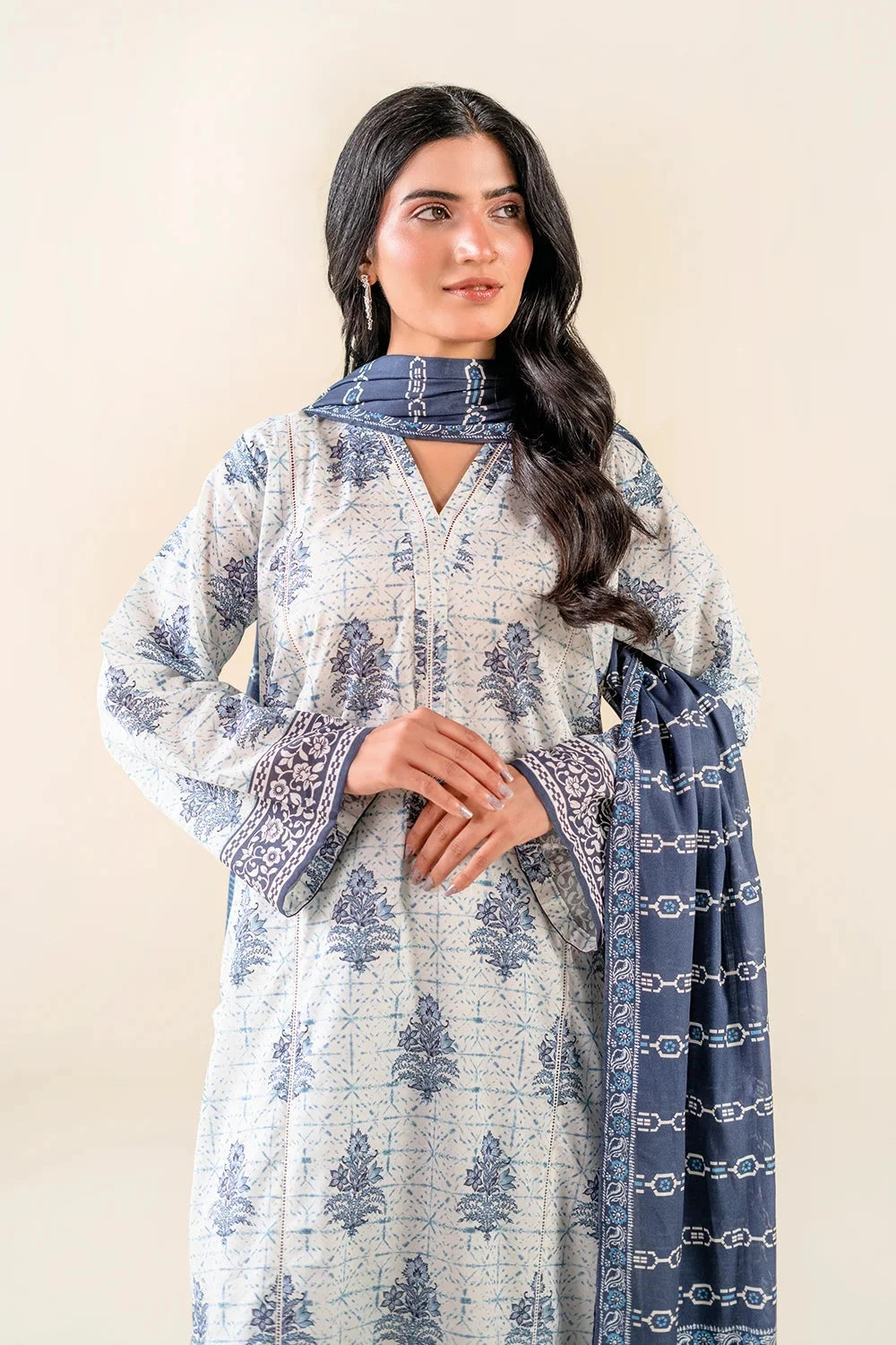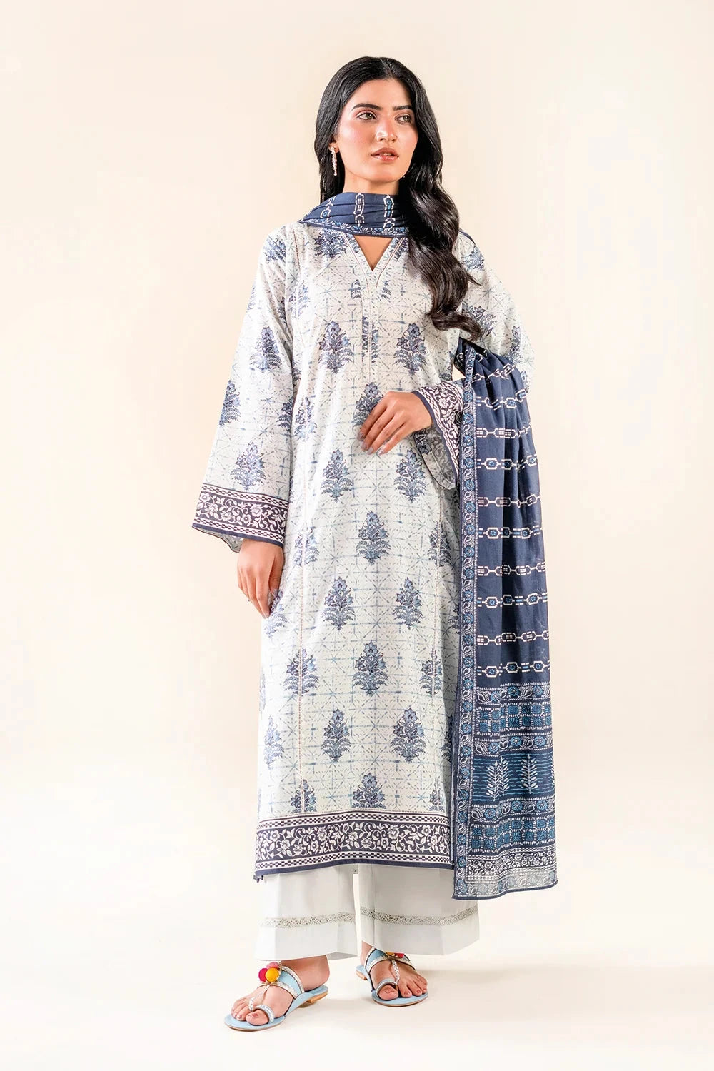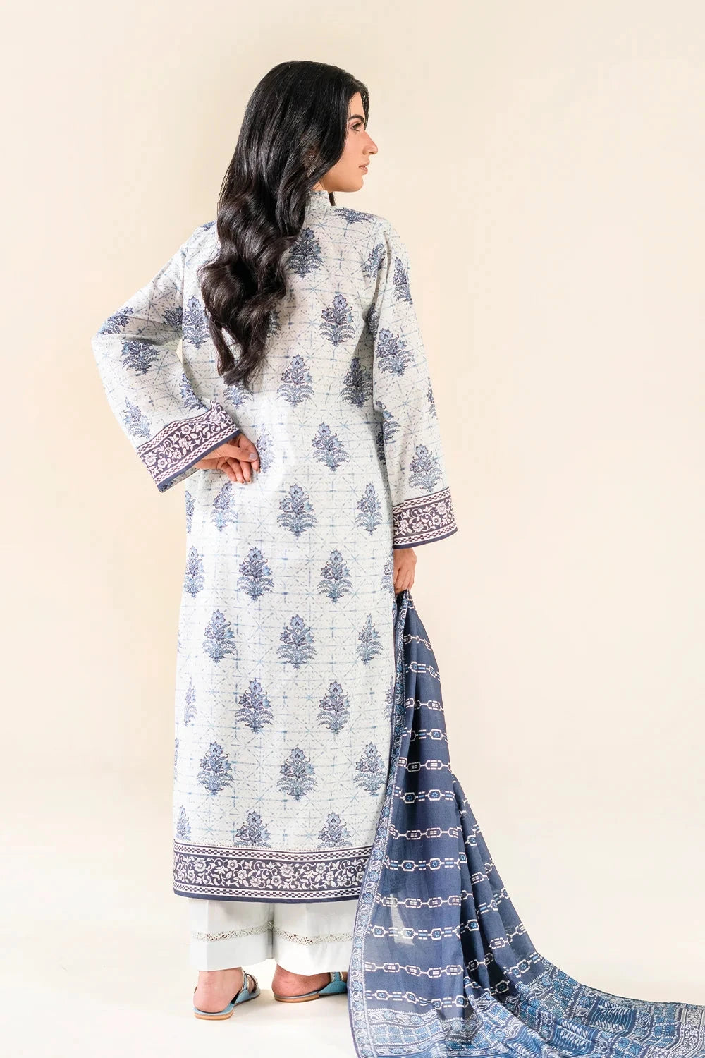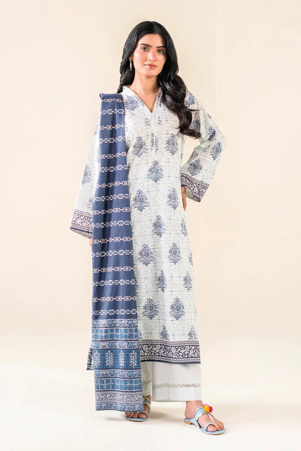 A stylish and breathable 3-piece lawn suit featuring a printed shirt, dyed trouser, and matching printed dupatta-perfect for effortless elegance and all-day comfort.