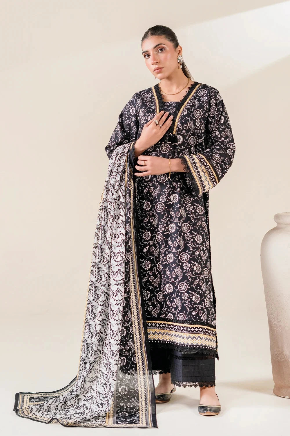 A stylish and breathable 3-piece lawn suit featuring a printed shirt, dyed trouser, and matching printed dupatta-perfect for effortless elegance and all-day comfort.