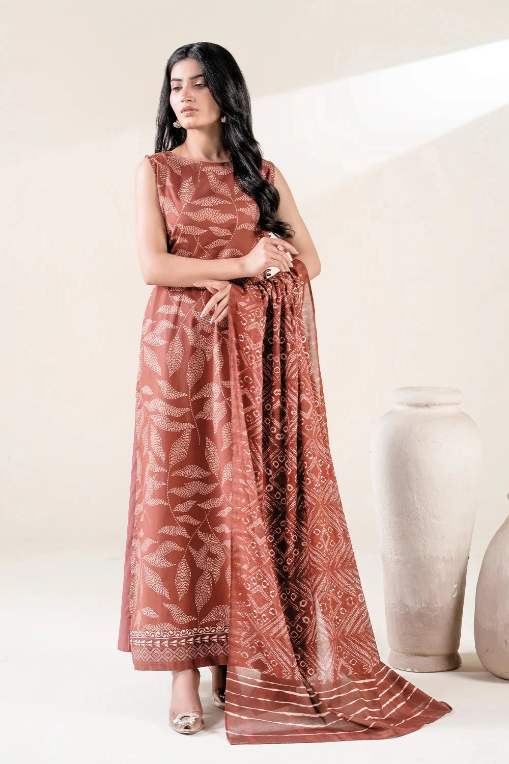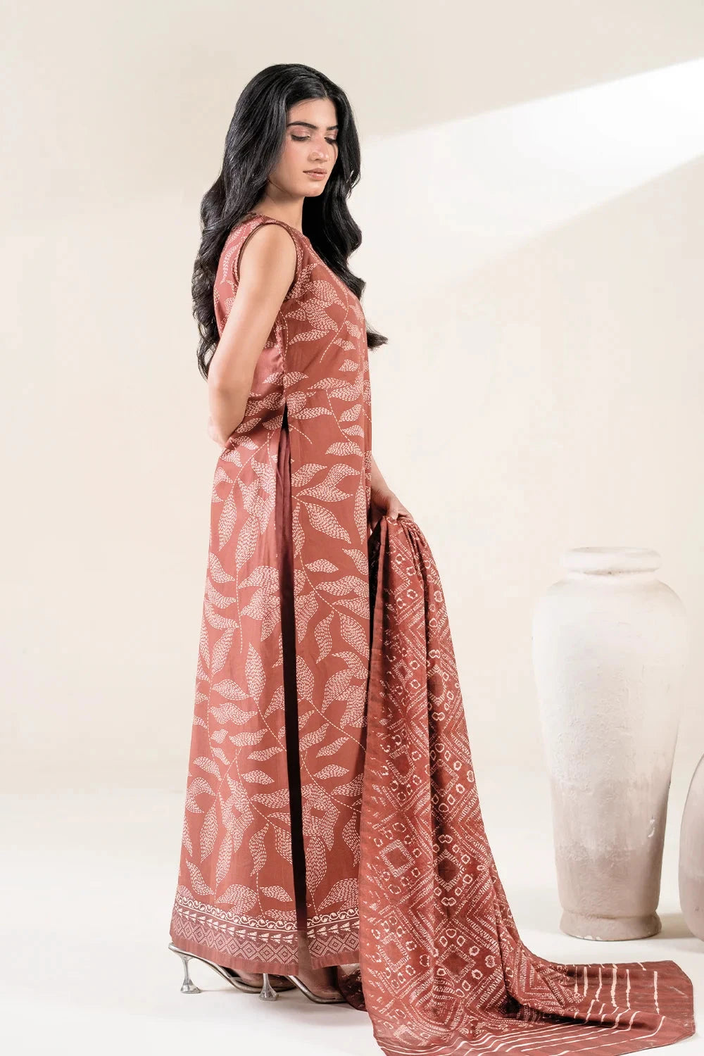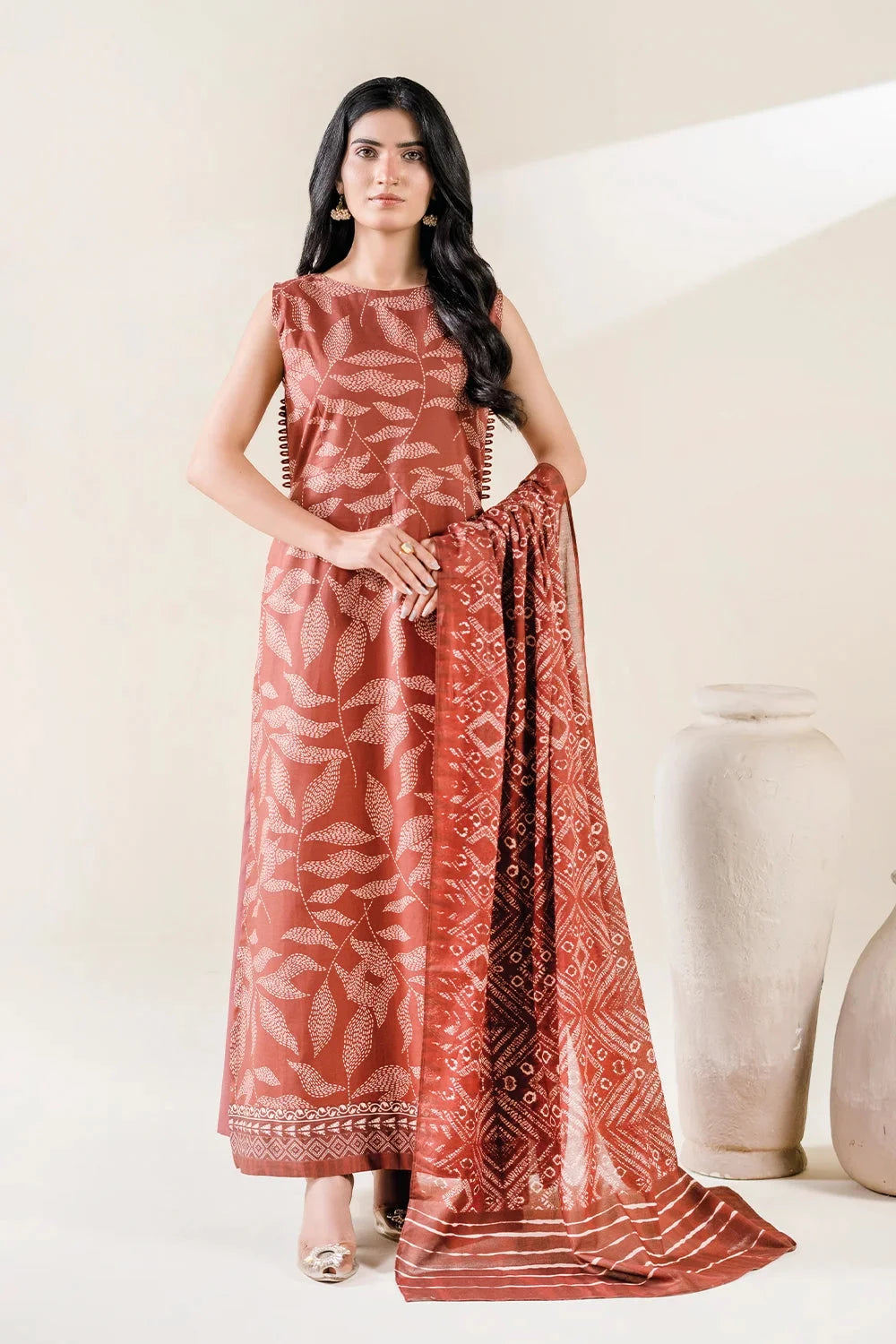 A stylish and breathable 3-piece lawn suit featuring a printed shirt, dyed trouser, and matching printed dupatta-perfect for effortless elegance and all-day comfort.