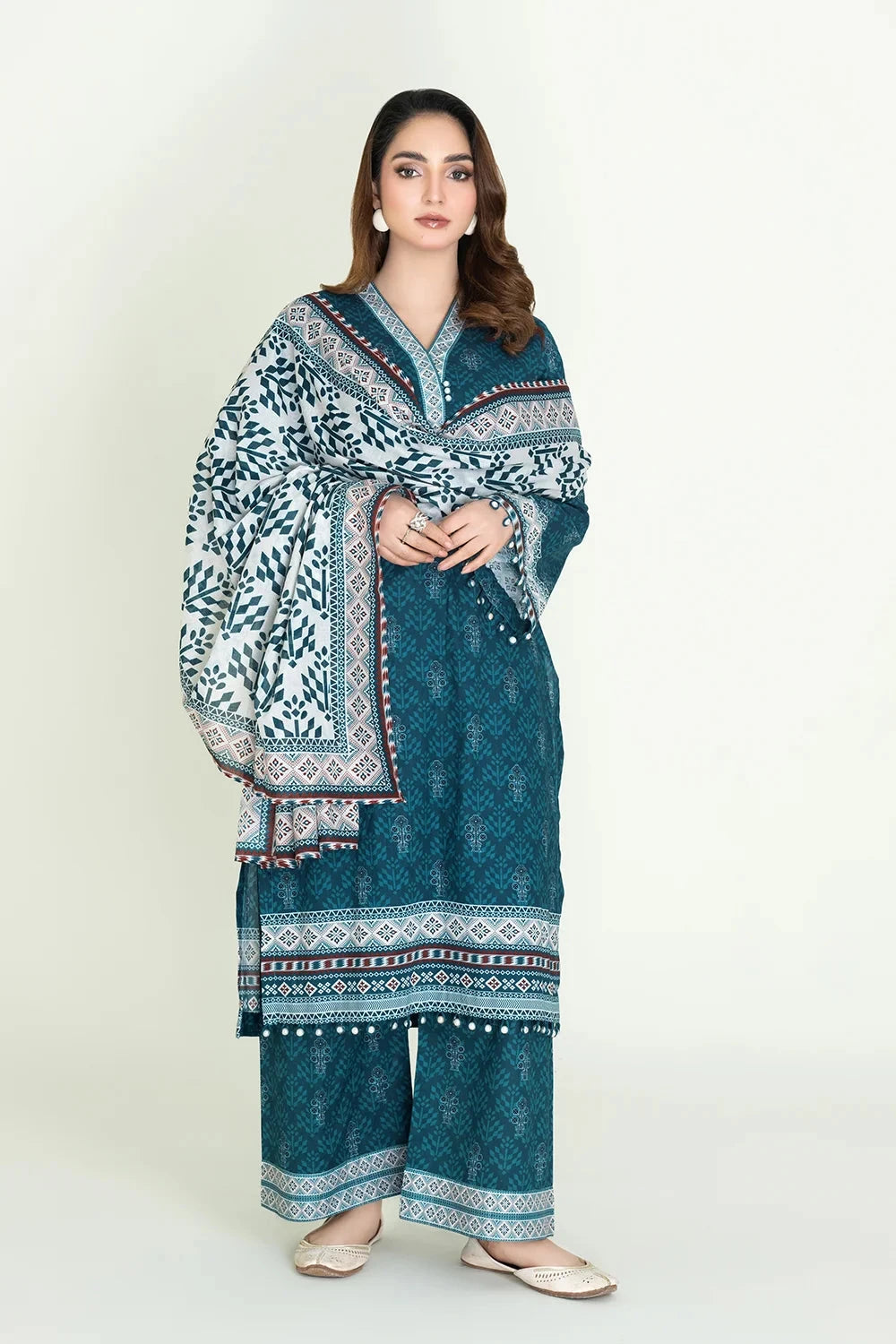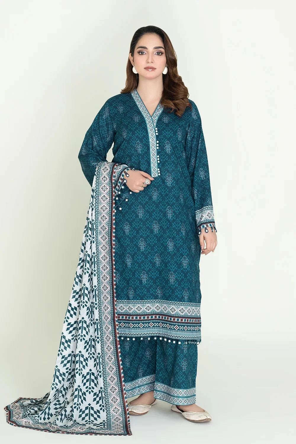 A stylish and breathable 3-piece lawn suit featuring a printed shirt, printed trouser, and matching printed dupatta-perfect for effortless elegance and all-day comfort.