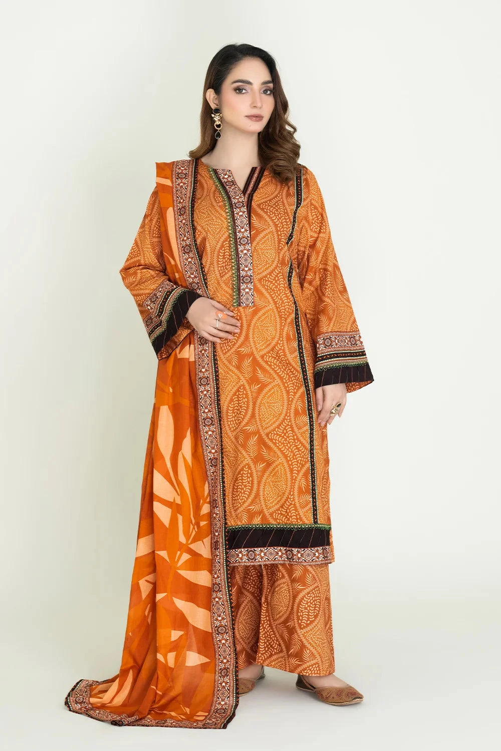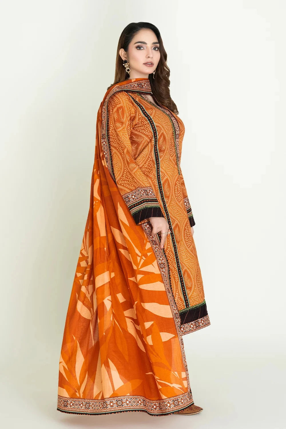 A stylish and breathable 3-piece lawn suit featuring a printed shirt, printed trouser, and matching printed dupatta-perfect for effortless elegance and all-day comfort.