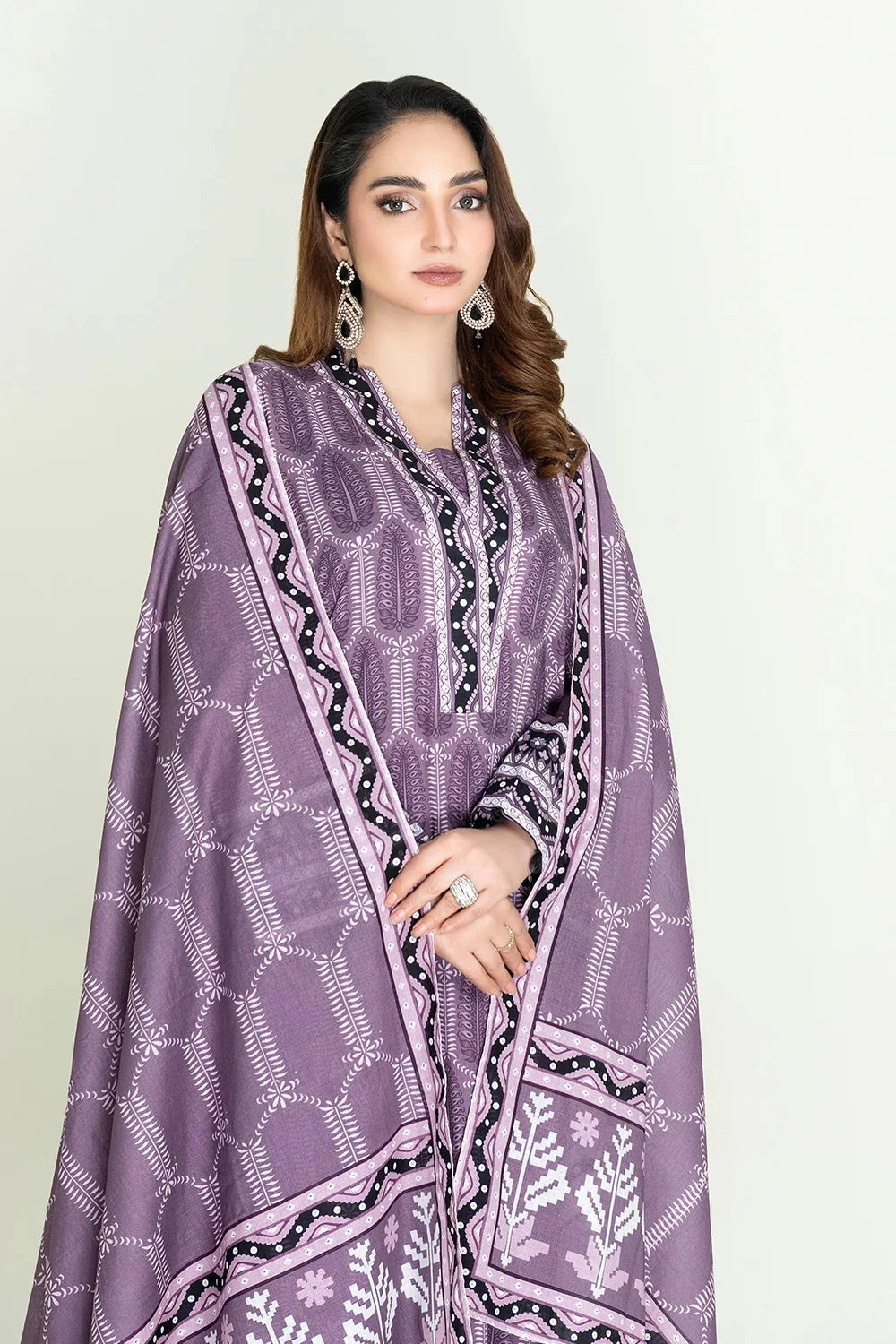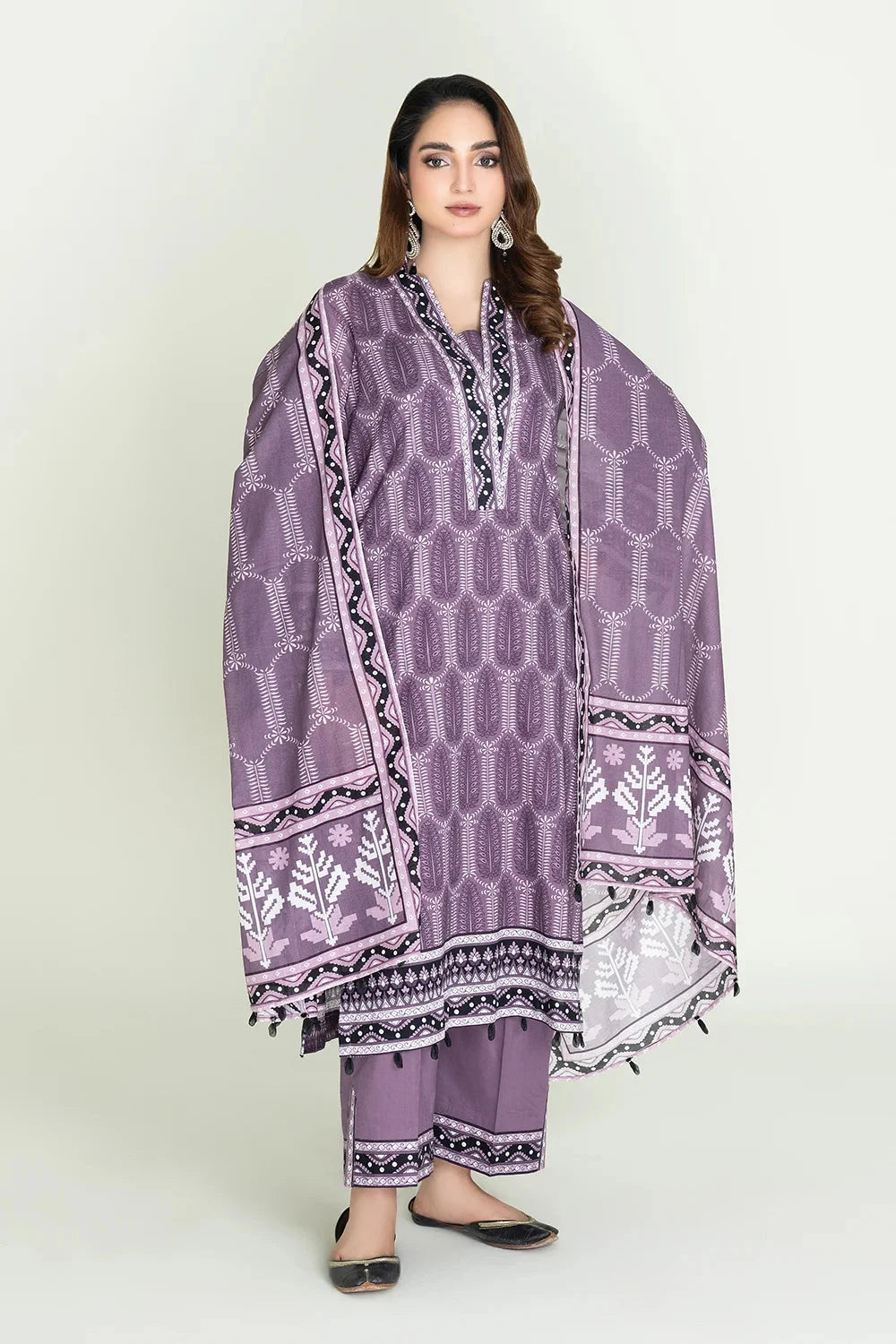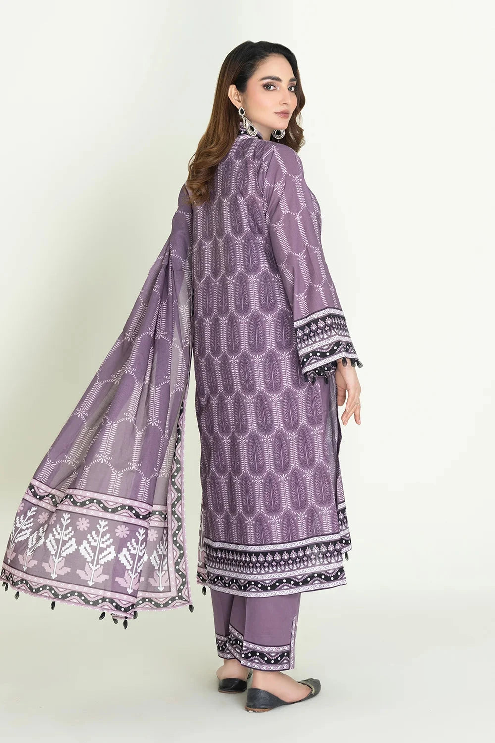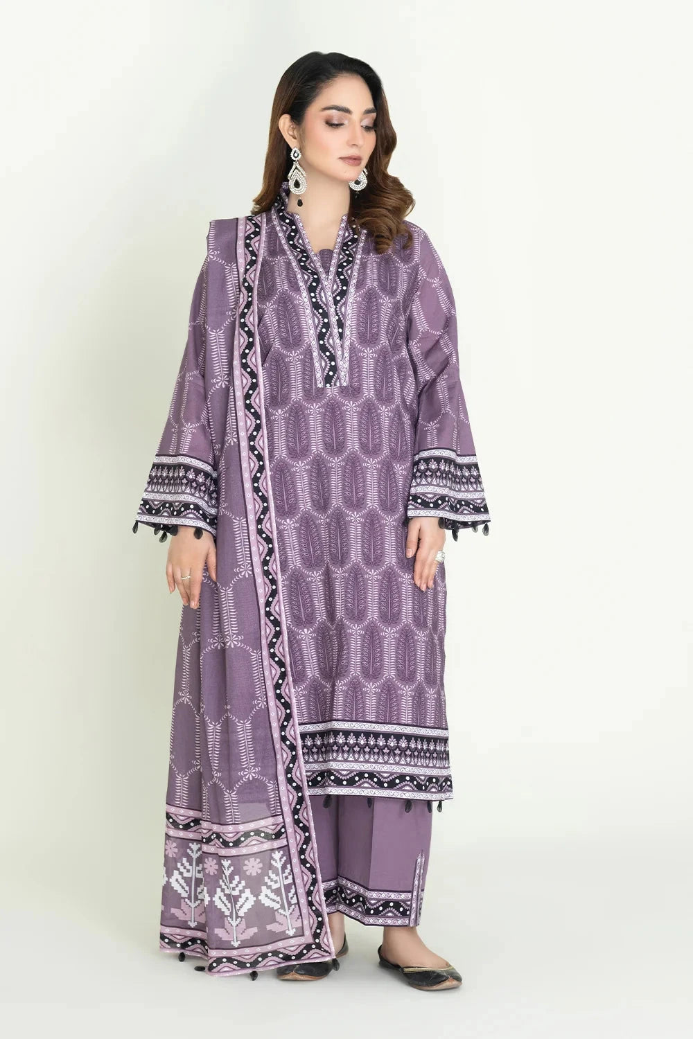 A stylish and breathable 3-piece lawn suit featuring a printed shirt, dyed trouser, and matching printed dupatta-perfect for effortless elegance and all-day comfort.