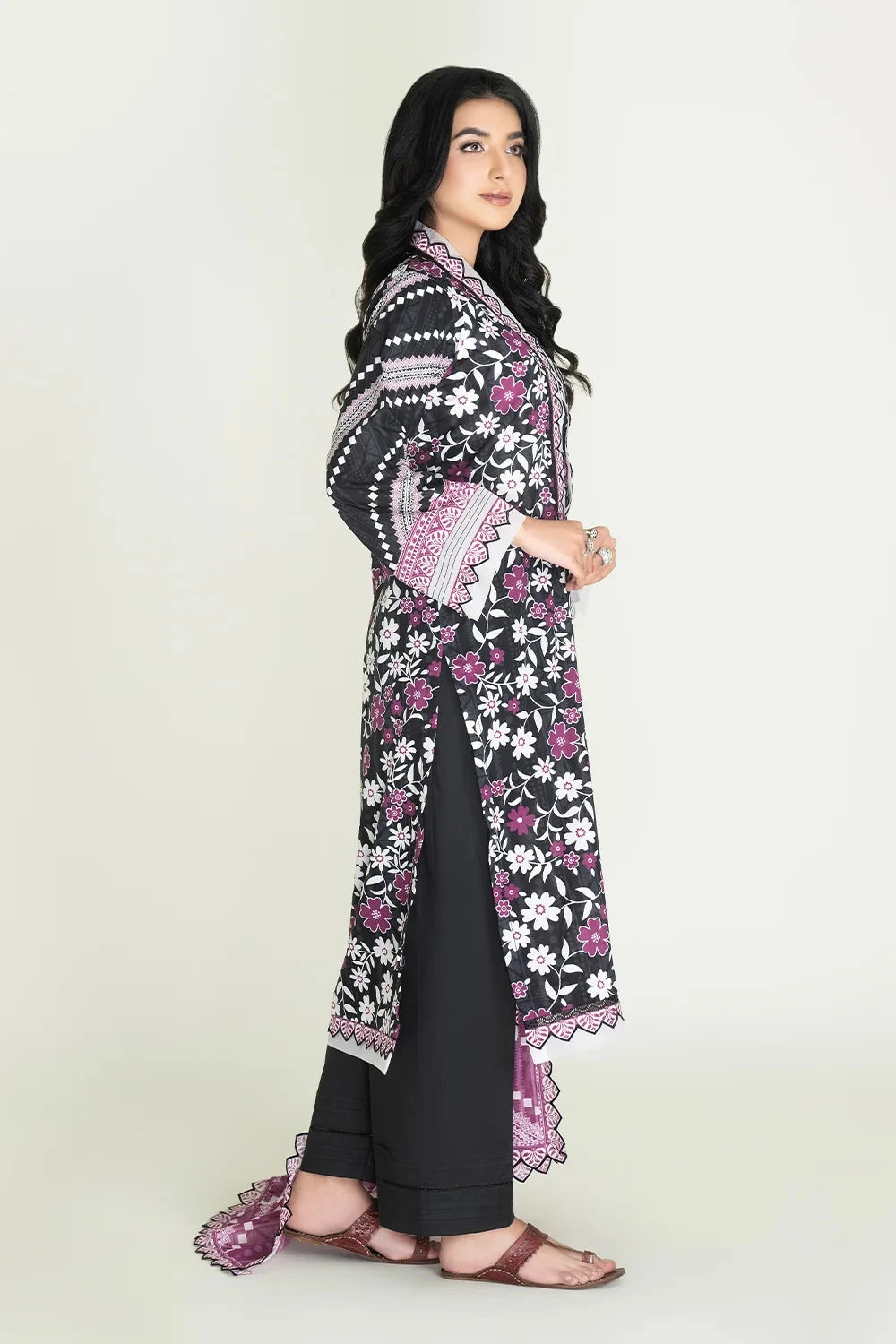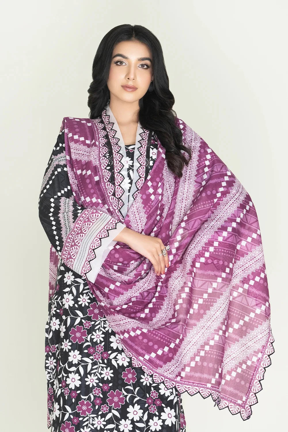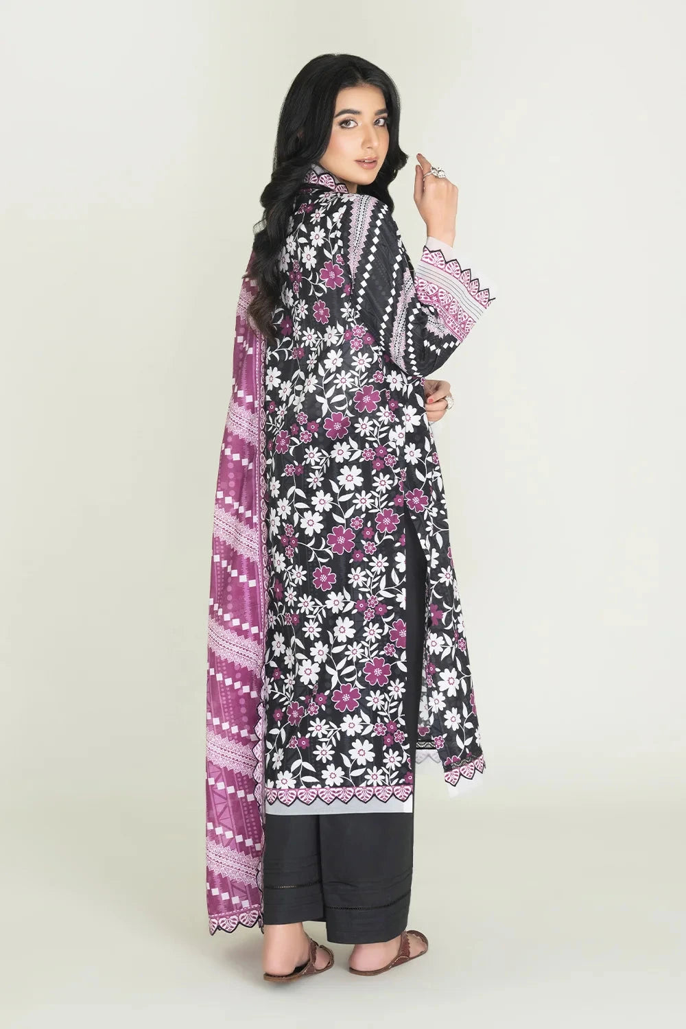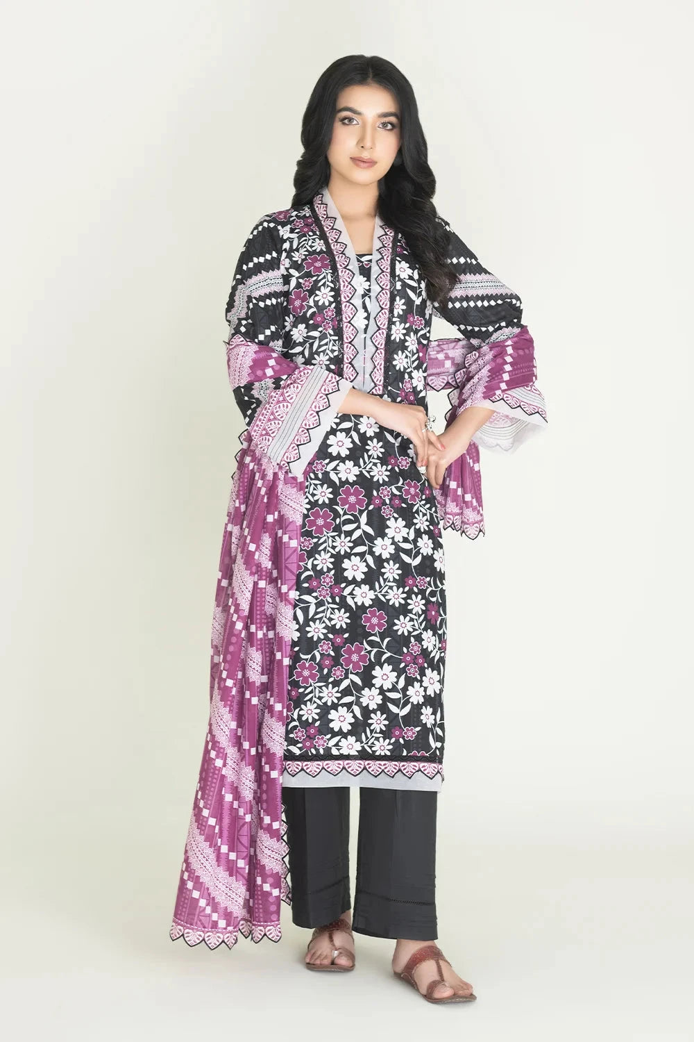 A stylish and breathable 3-piece lawn suit featuring a printed shirt, dyed trouser, and matching printed dupatta-perfect for effortless elegance and all-day comfort.