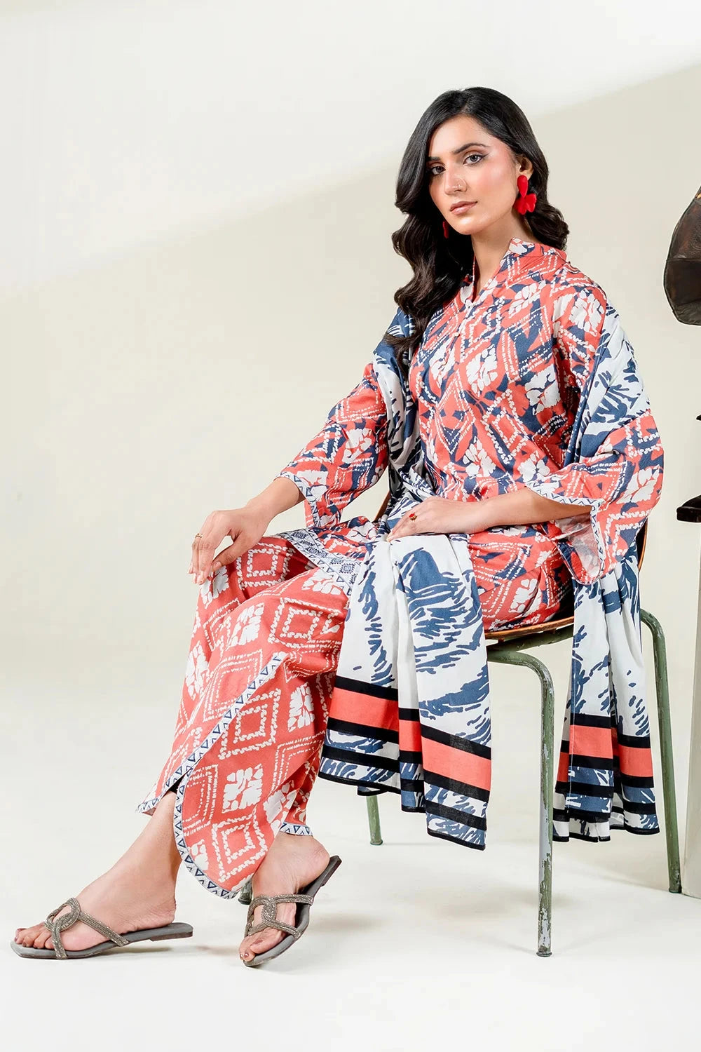 A stylish and breathable 3-piece lawn suit featuring a printed shirt, printed trouser, and matching printed dupatta-perfect for effortless elegance and all-day comfort.