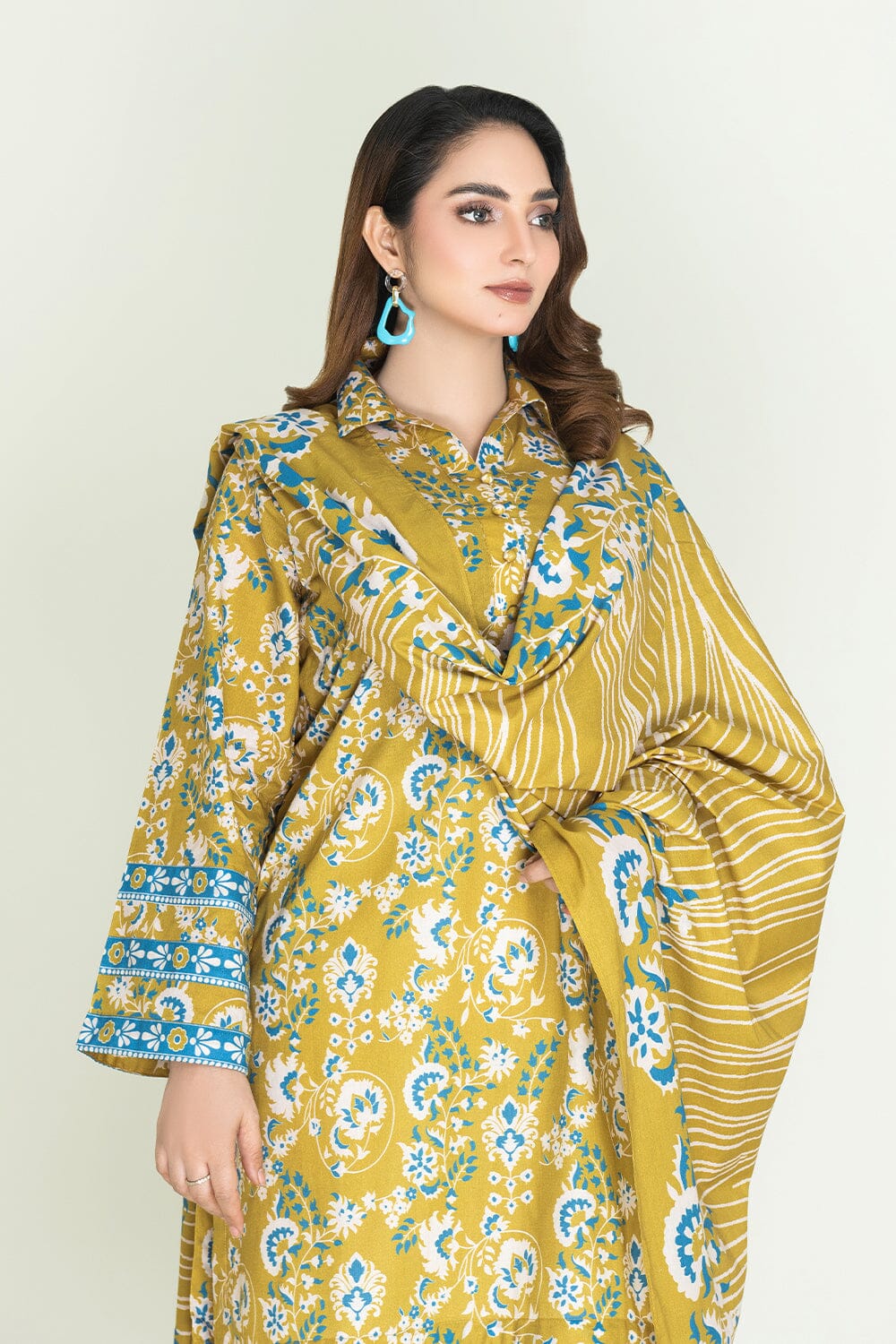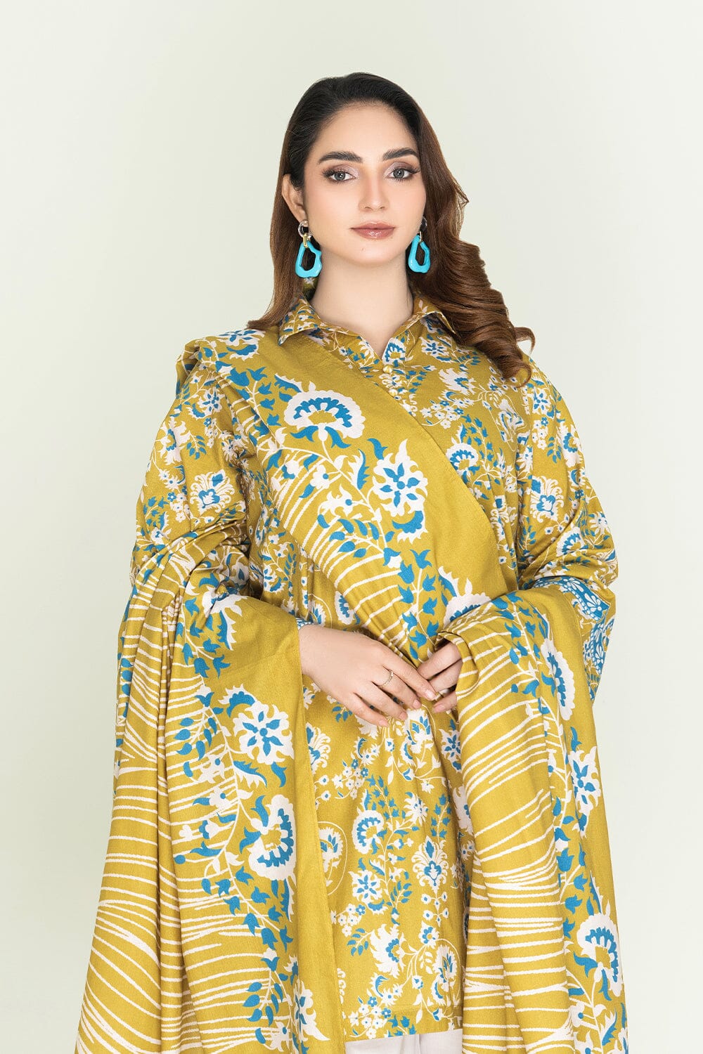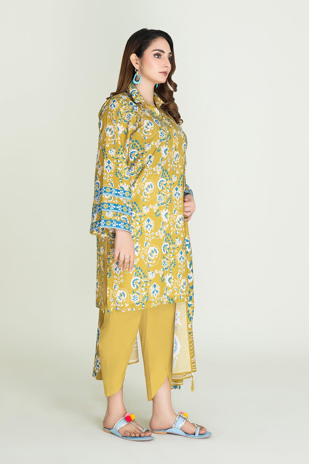 A stylish and breathable 3-piece lawn suit featuring a printed shirt, dyed trouser, and matching printed dupatta-perfect for effortless elegance and all-day comfort.