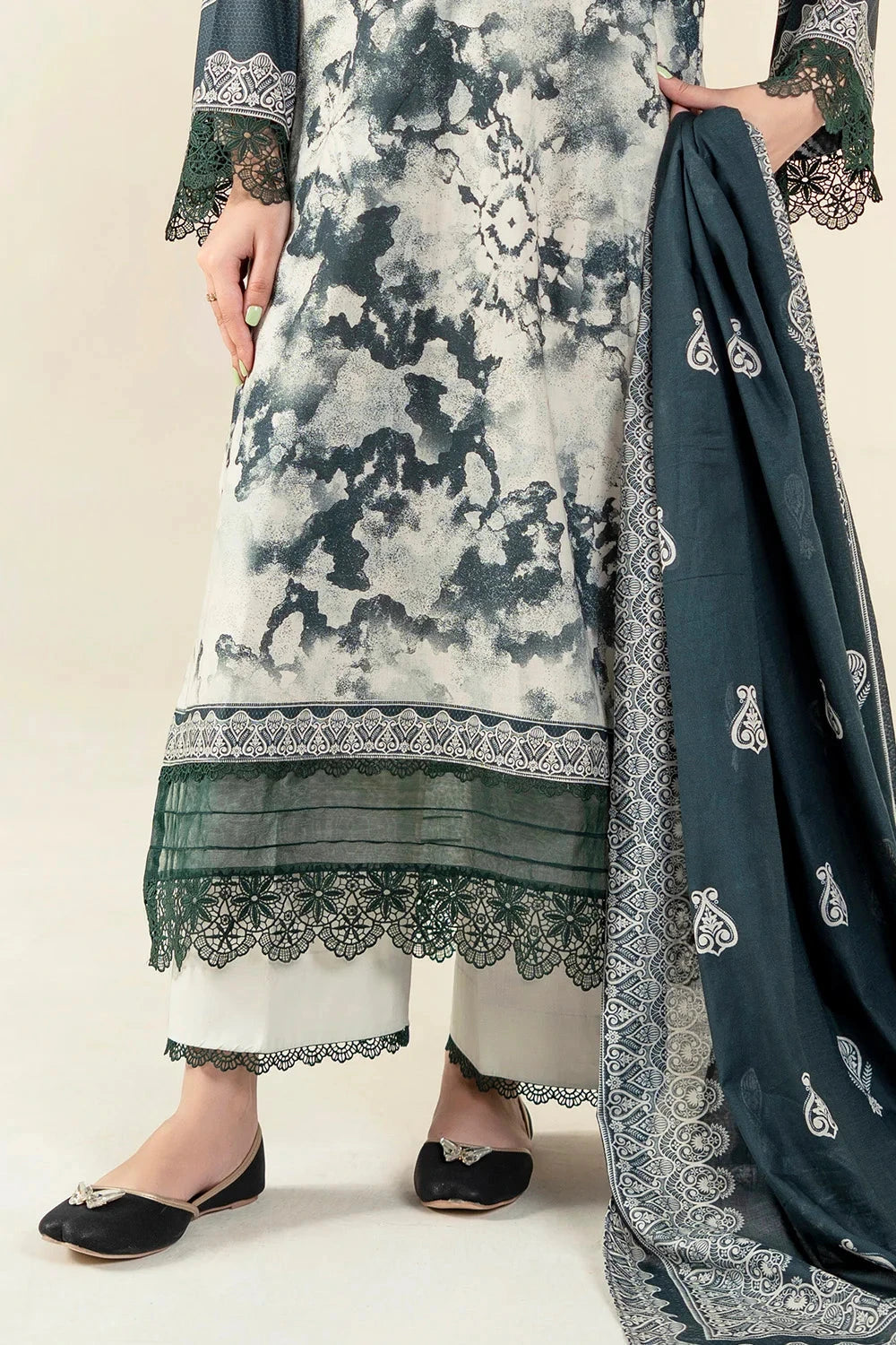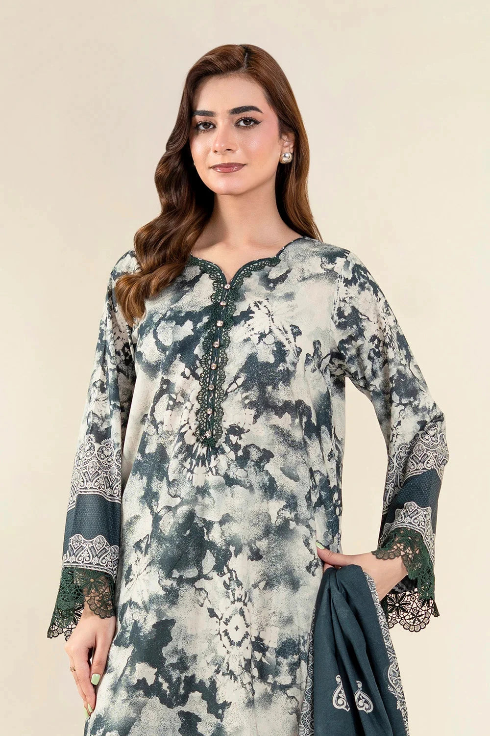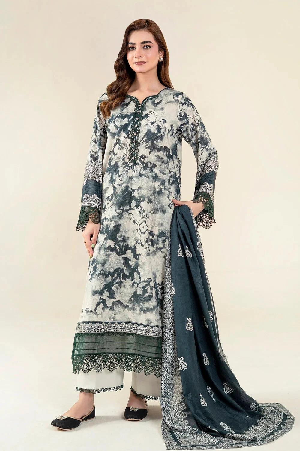 A stylish and breathable 3-piece lawn suit featuring a printed shirt, dyed trouser, and matching printed dupatta-perfect for effortless elegance and all-day comfort.