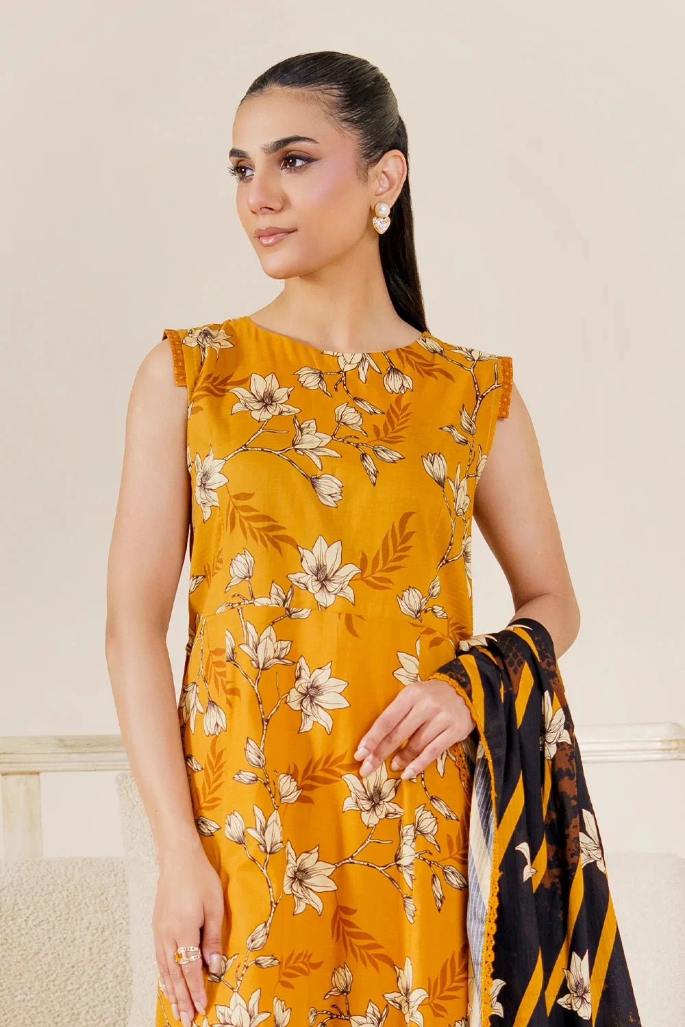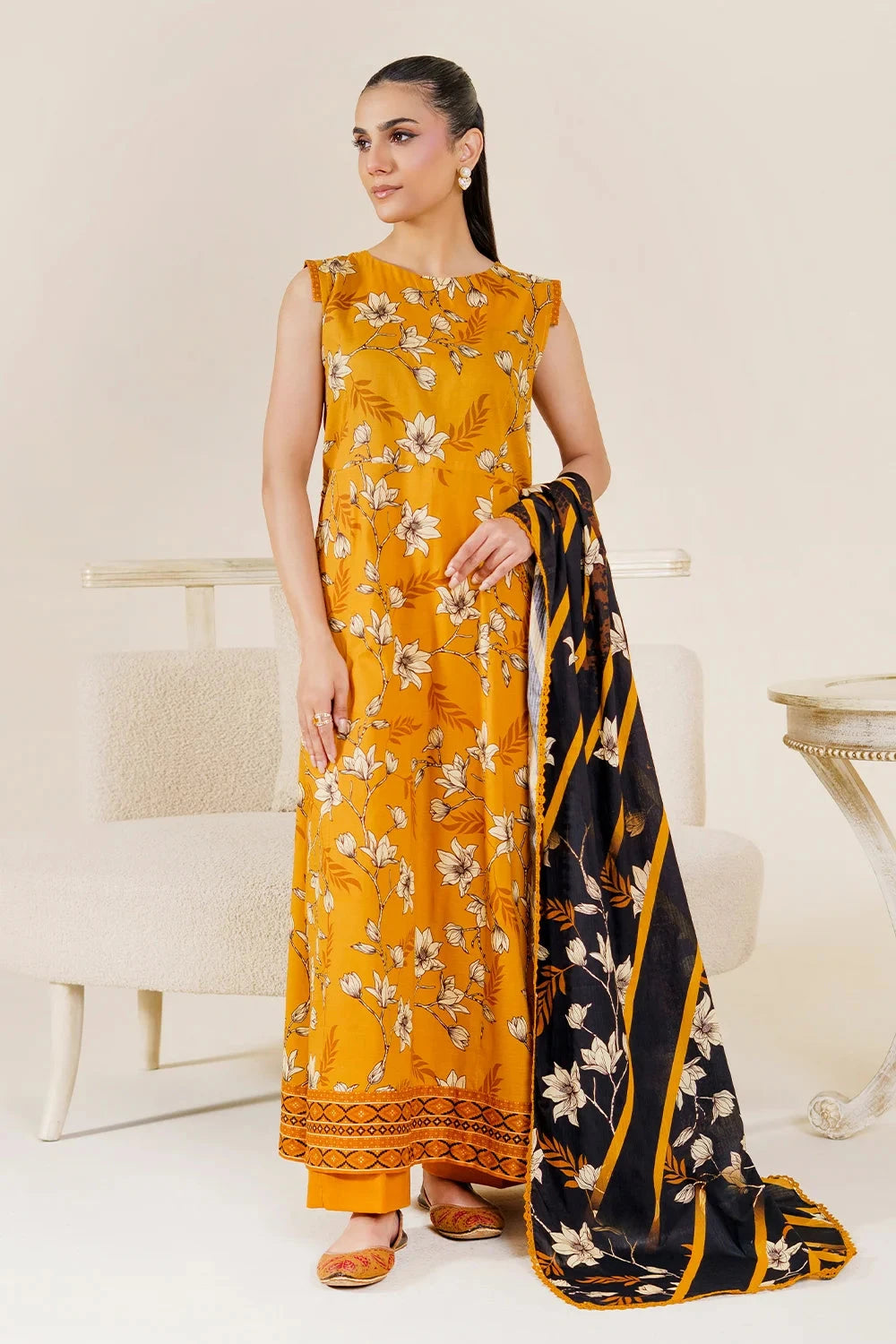 A stylish and breathable 3-piece lawn suit featuring a printed shirt, dyed trouser, and matching printed dupatta-perfect for effortless elegance and all-day comfort.