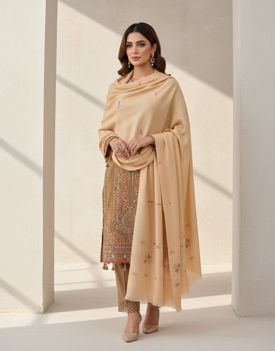 Experience timeless warmth and sophistication with our Wool Khaddi Embroidered Shawl. Expertly woven from premium-quality wool, this shawl delivers exceptional softness, comfort, and style. Elegant embroidery adds a touch of craftsmanship, making it perfect for both everyday wear and special occasions.