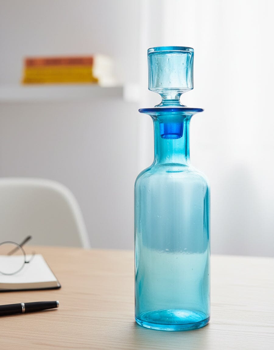 Add a refined, contemporary touch to your space with this elegant blue glass decorative bottle. Crafted from high-quality transparent glass, it features a sleek cylindrical shape and a matching glass stopper that enhances its sophisticated appeal. The soft aqua-blue tone brings a sense of calm and freshness, making it an ideal accent for modern interiors.